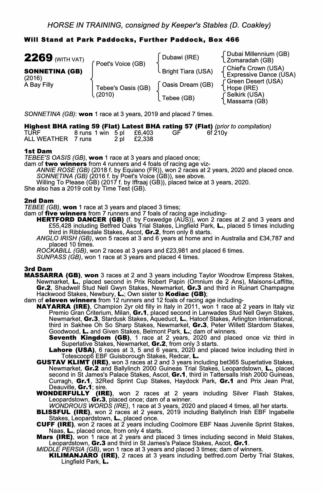 February Sale 2022 lot 202 Annie Rose (GB) (F. by Equiano (FR)), Maunby House Stables (T. D. Barron)=>Philip Kirby 15,000 gns