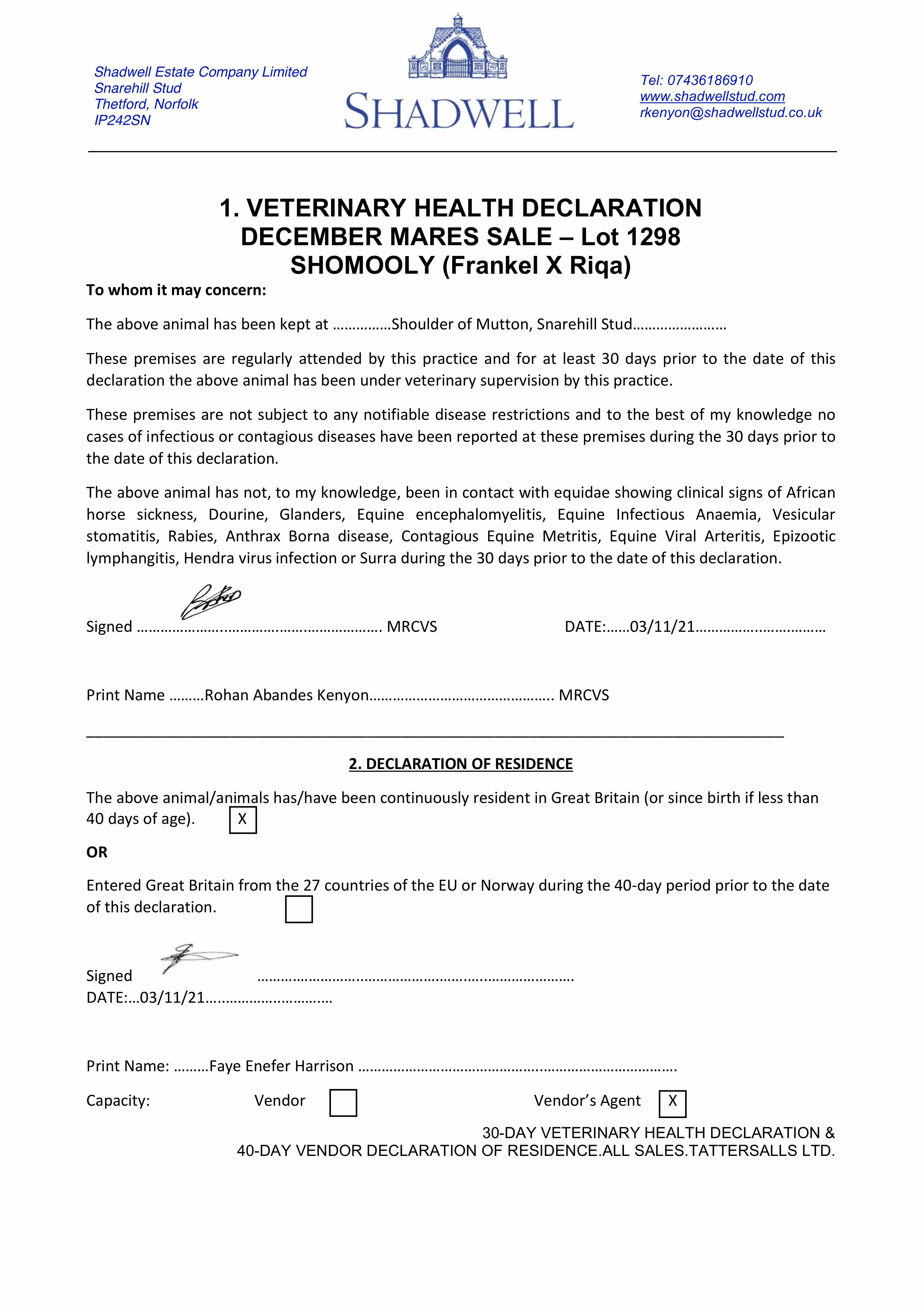 Consignor: Shadwell Estate Company Ltd.