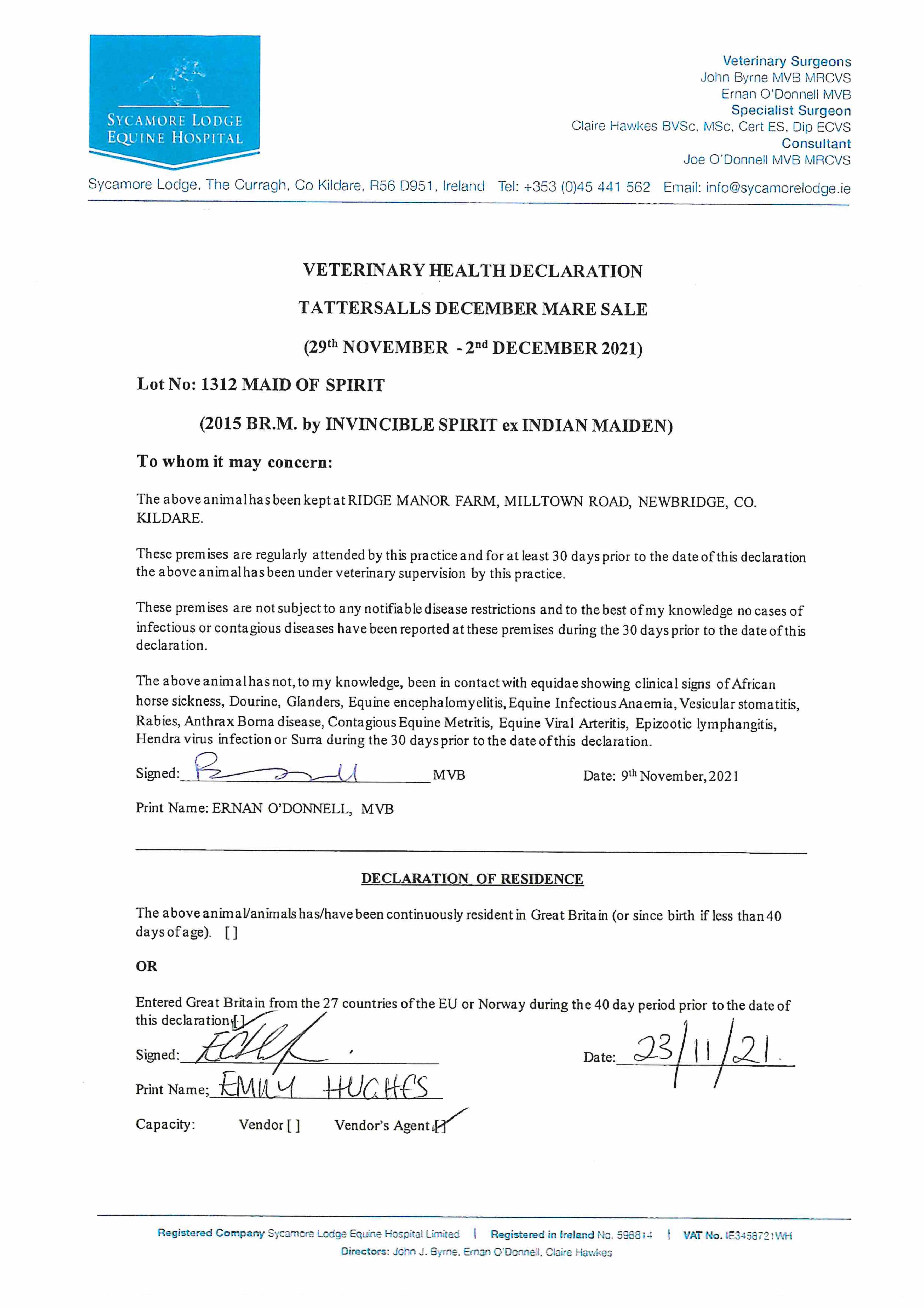 December Mare Sale 2019 lot 1342, Ballyshannon Stud, Ireland (Agent)=>Lot Not Sold 85,000 gns