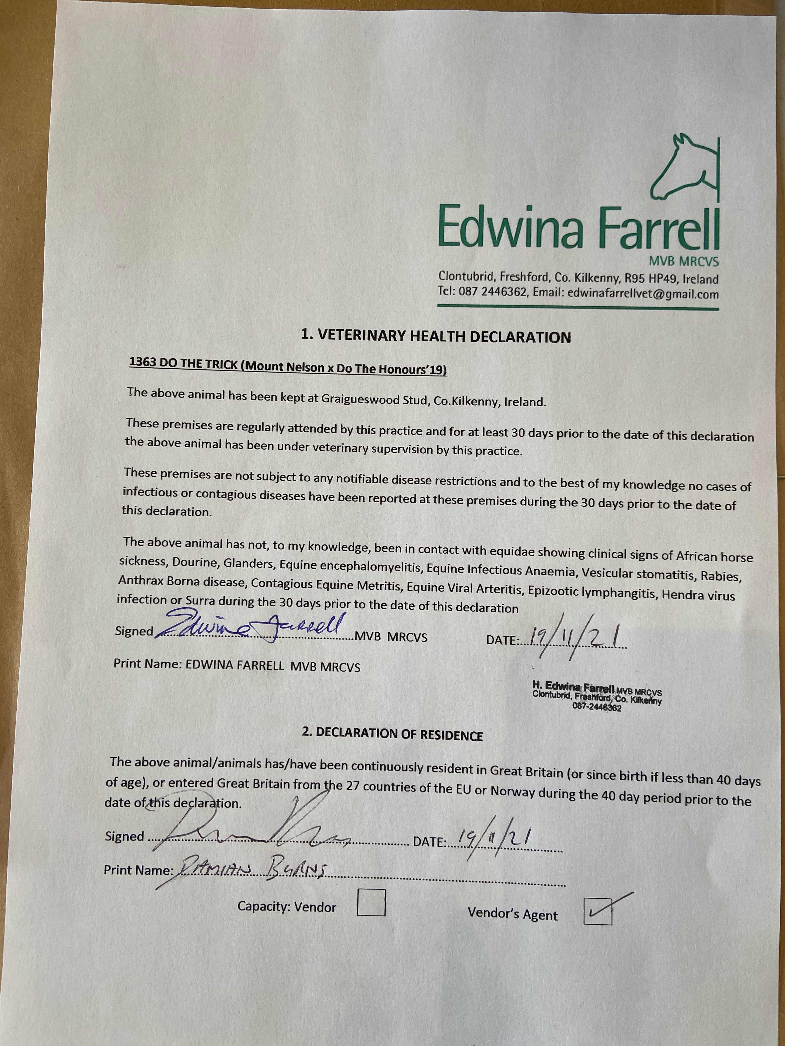 November Flat Foal & Breeding Stock Sale lot 998A, Diomed Bloodstock=>Vendor €4,000