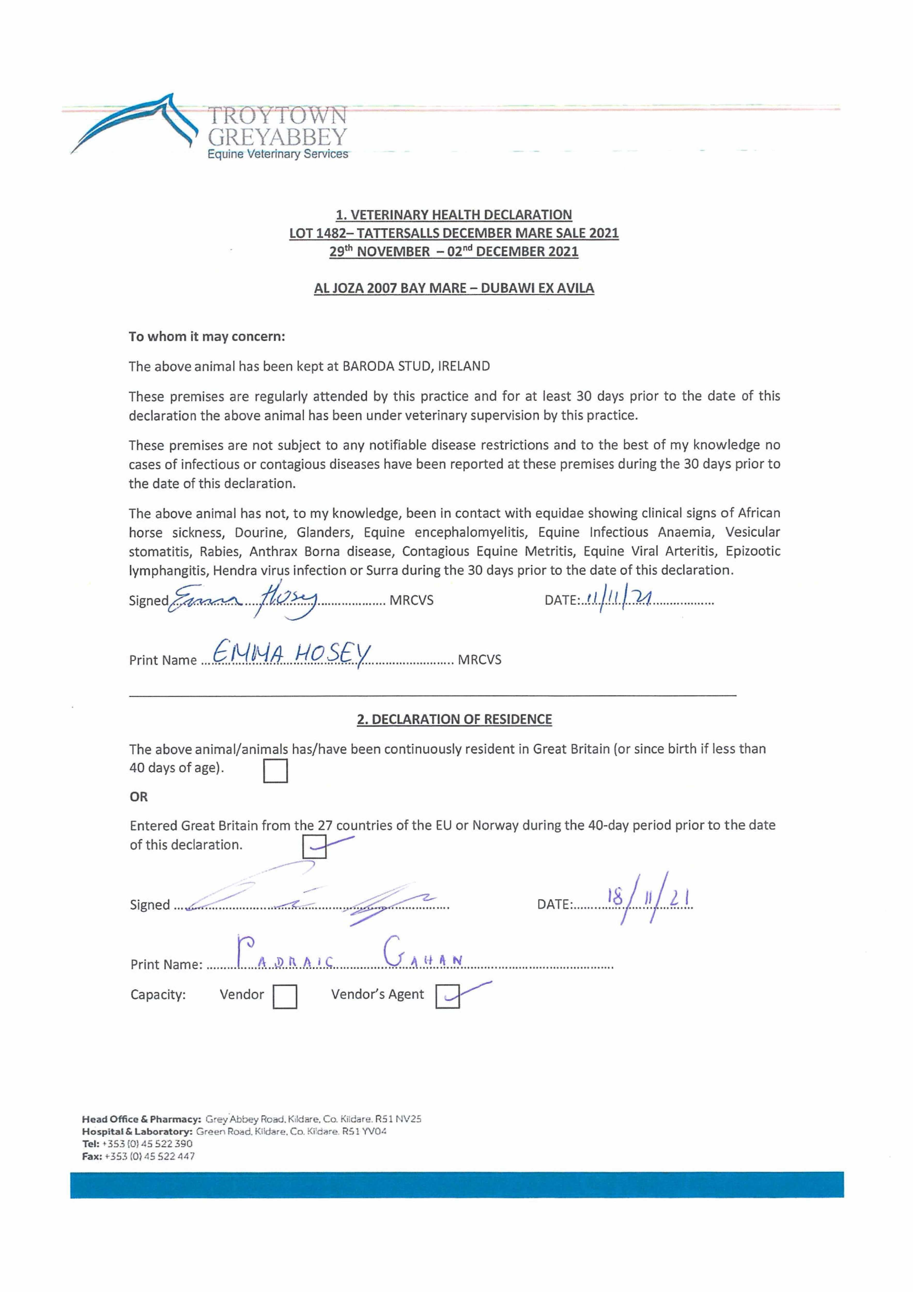Consignor: Baroda Stud, Ireland