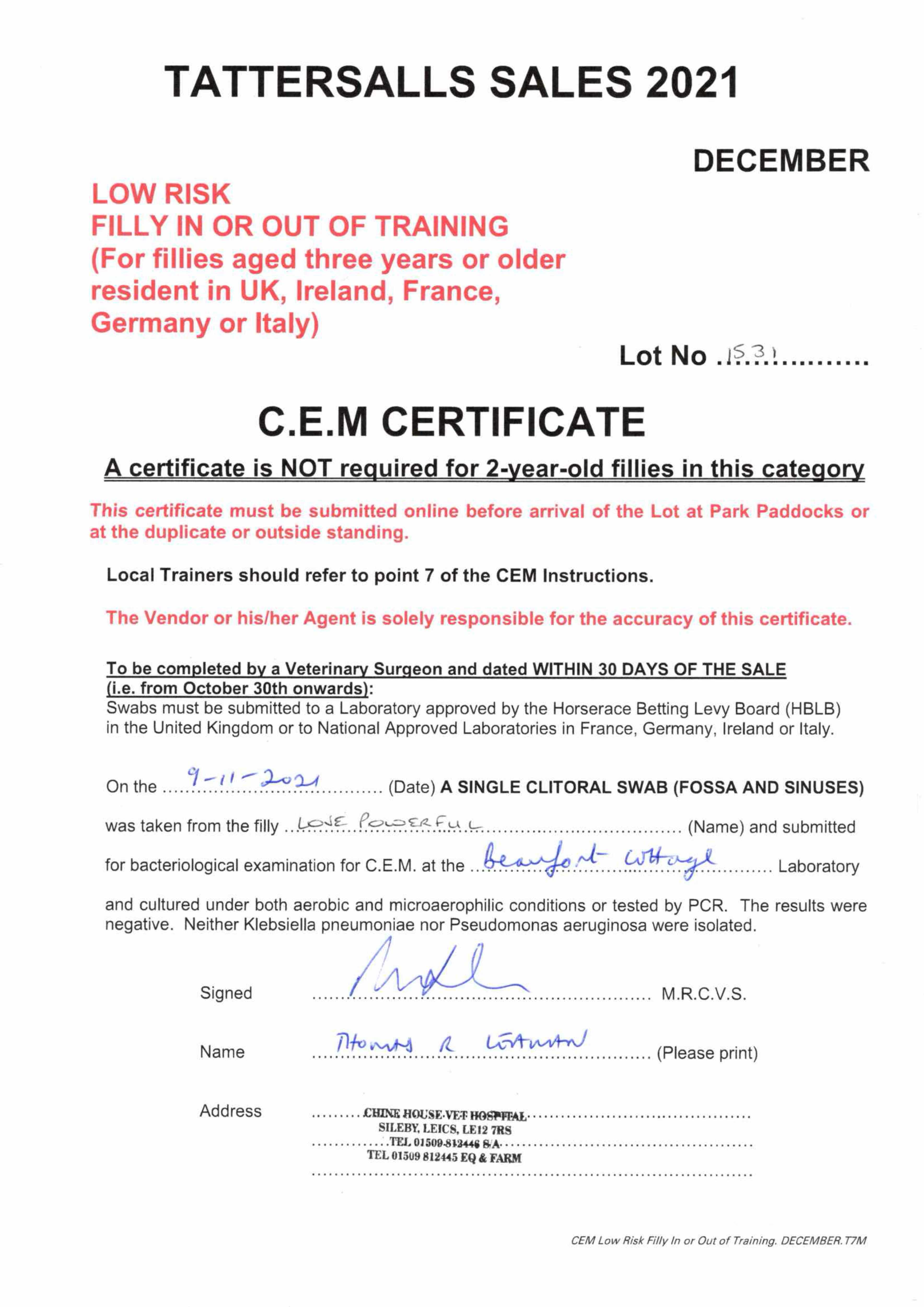 Consignor: Whatton Manor Stud