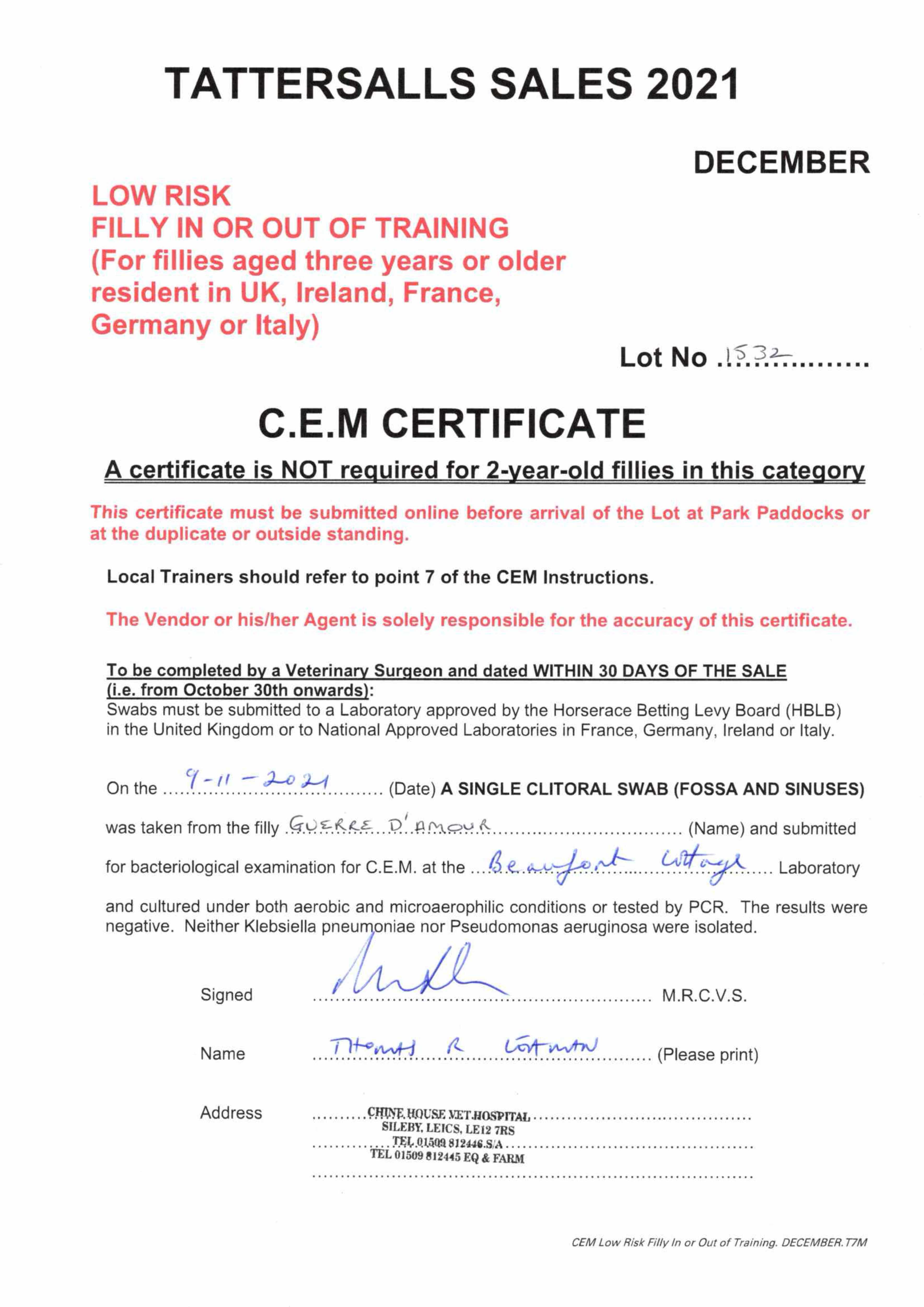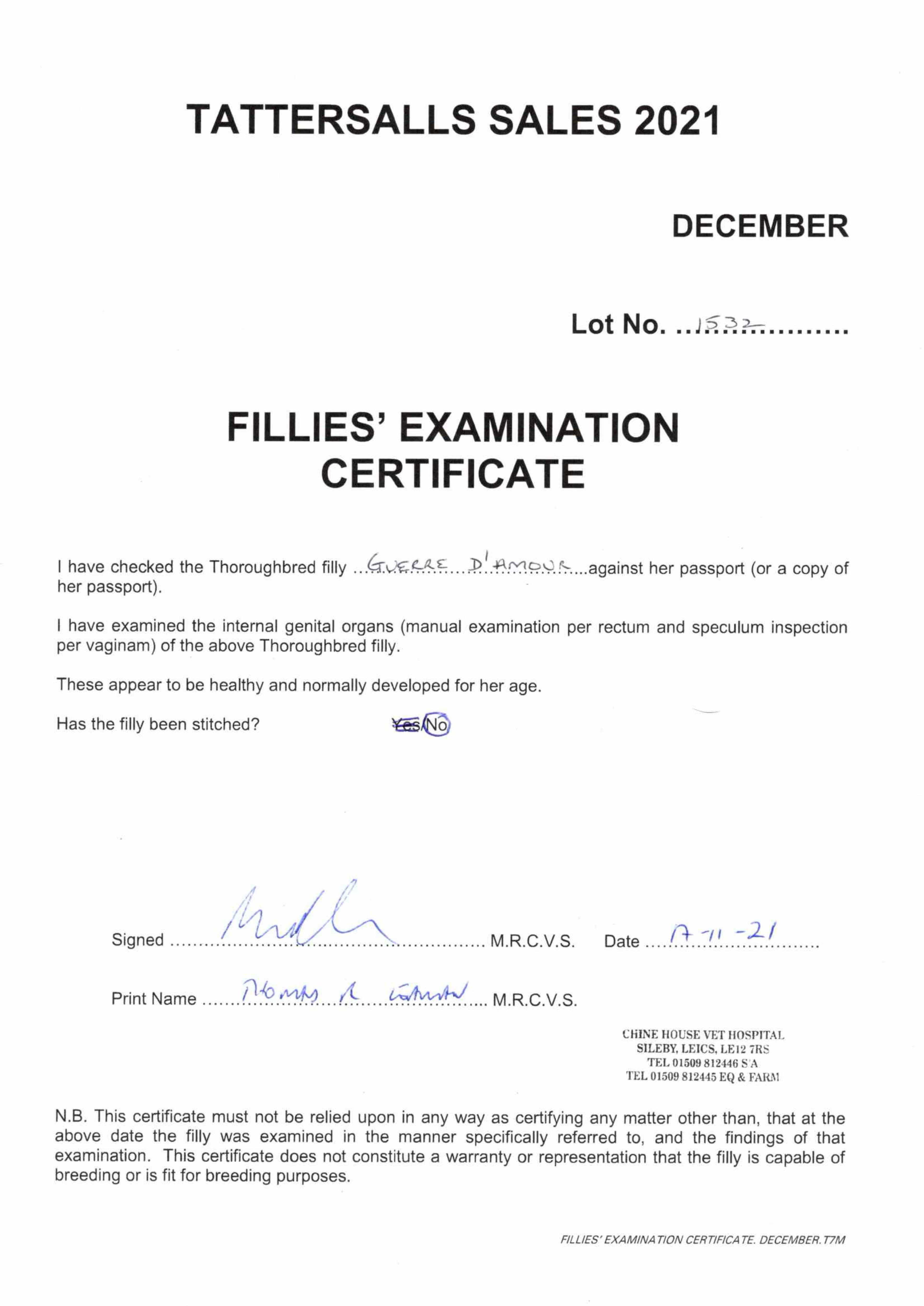 December Mare Sale 2020 lot 1382 Nevereversaynever (IRE) (M. by No Nay Never (USA)), John Troy (Agent)=>Vendor 145,000 gns