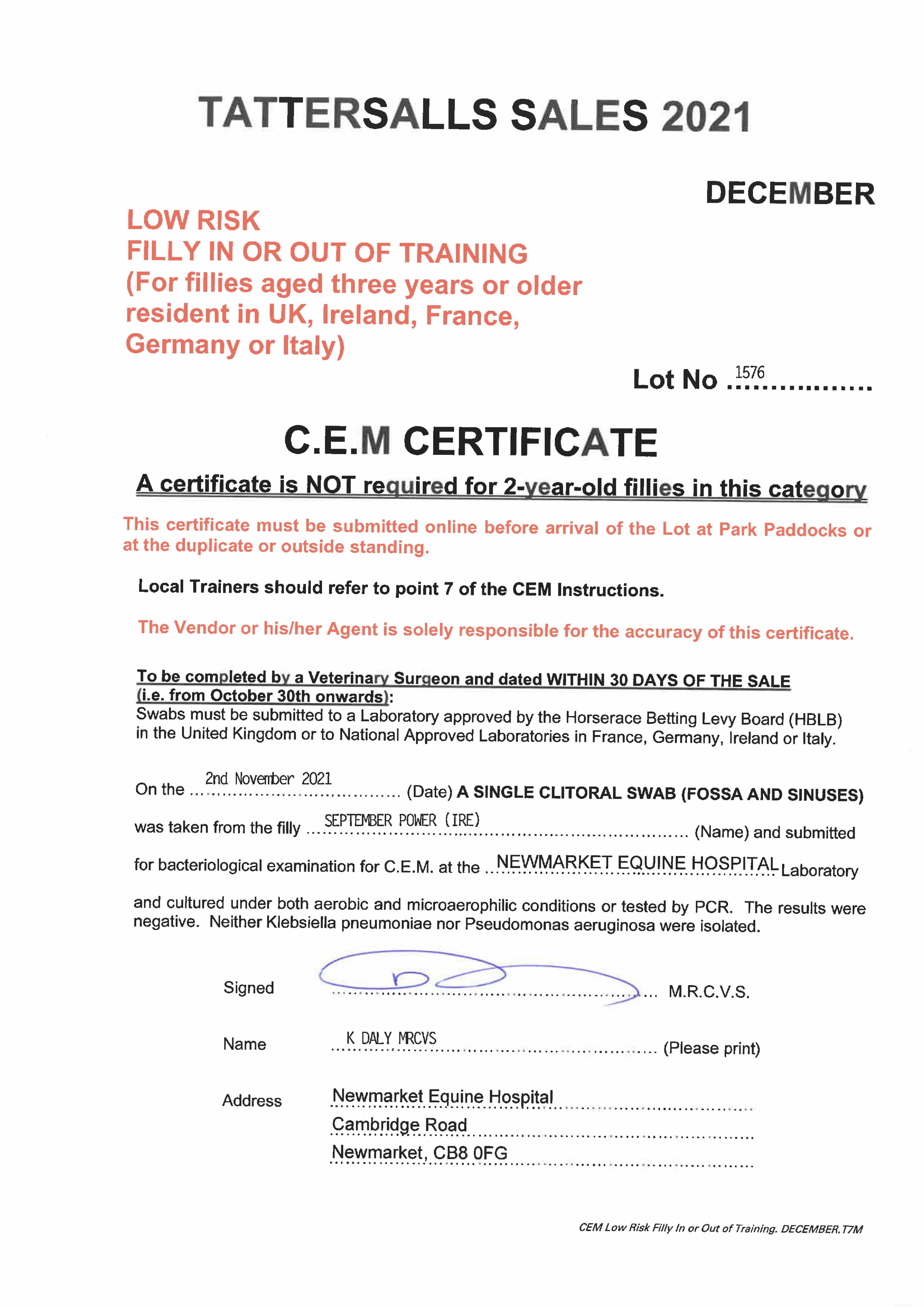 Consignor: Whatton Manor Stud