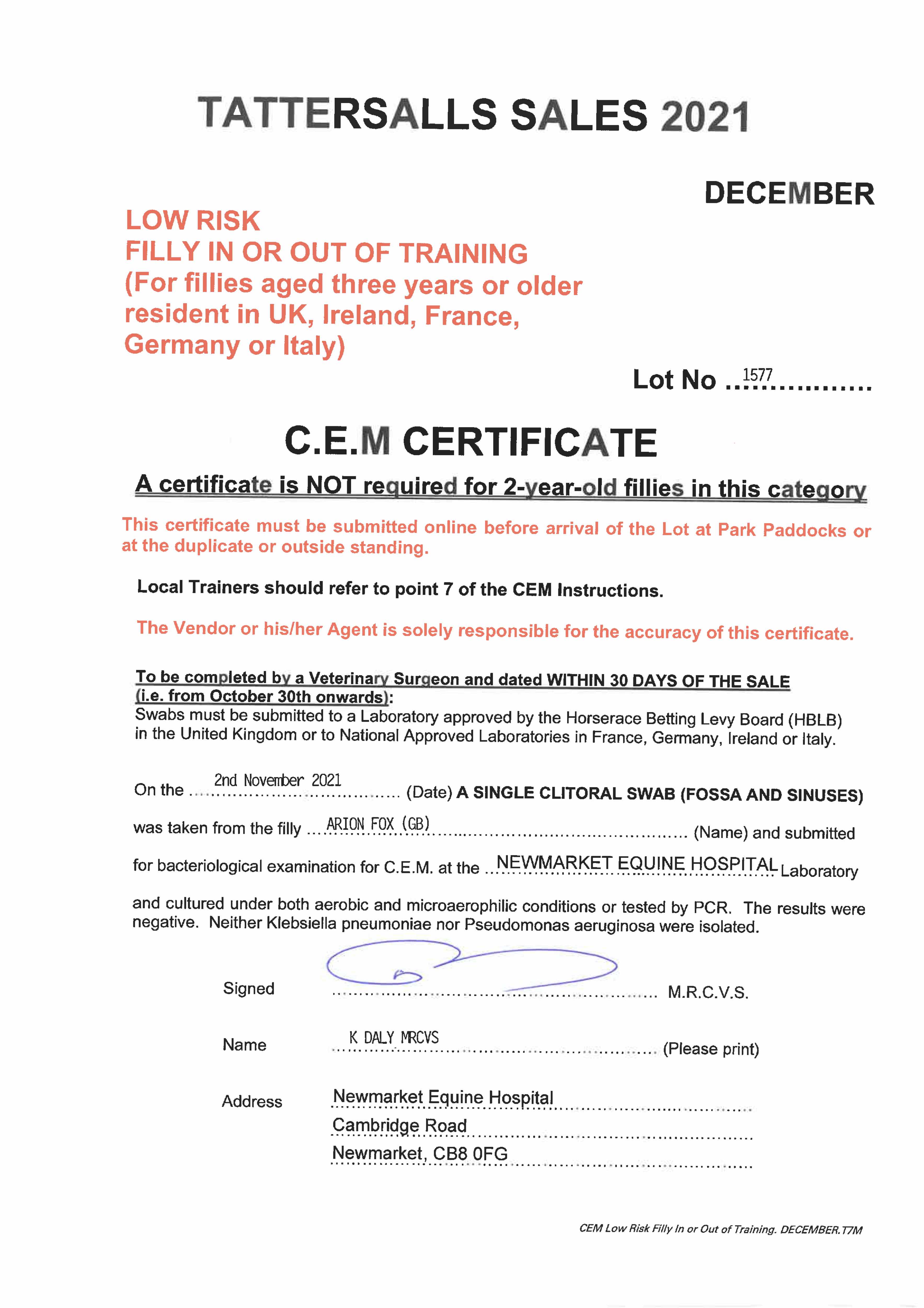 October Yearling Sale, Book 2 2021 lot 903 F. by Roaring Lion (USA) 2020, Redgate Bloodstock Ltd.=>Karl & Kelly Burke 38,000 gns