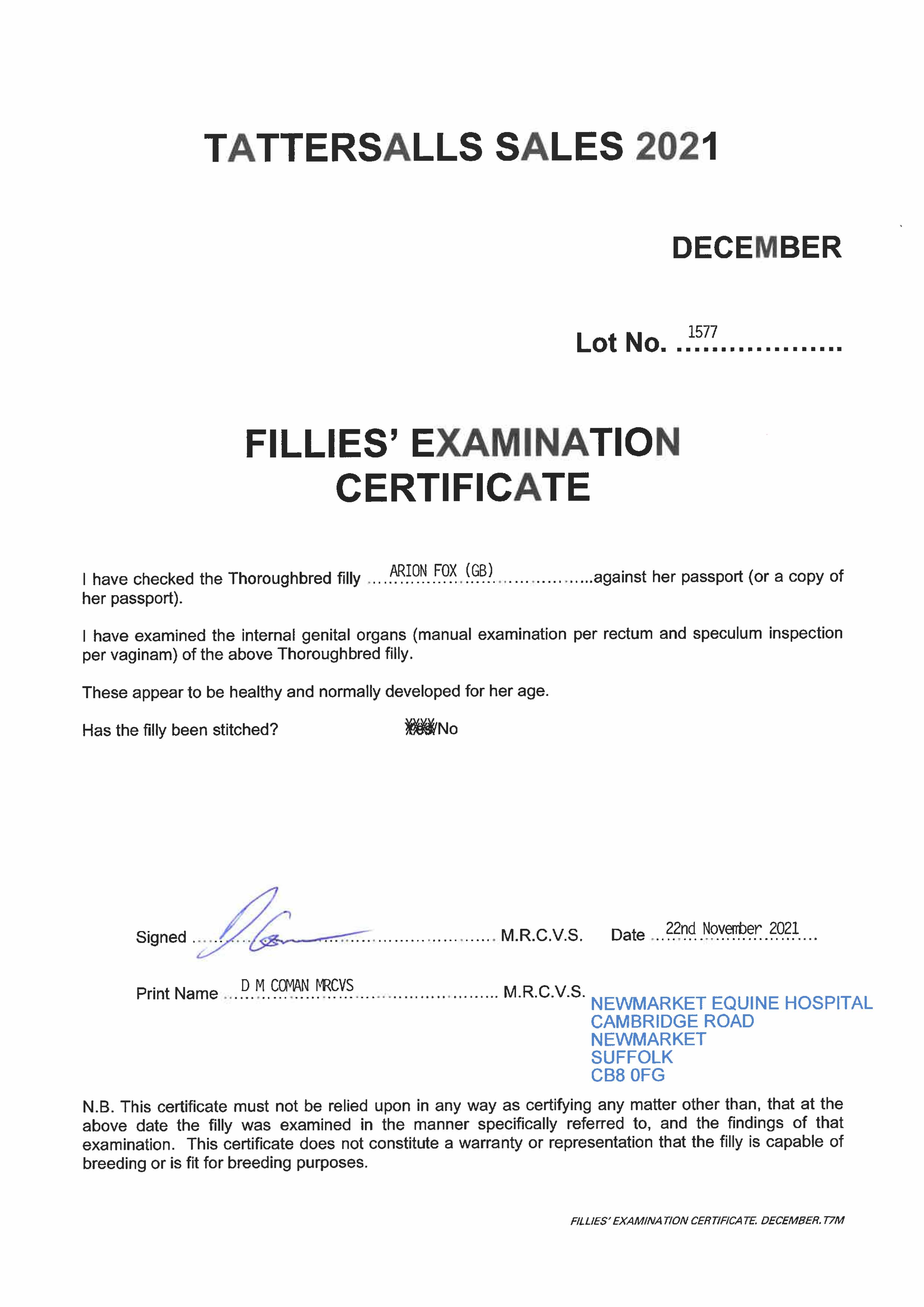 December Mare Sale 2019 lot 1615 Ultra Violet (GB) (F. by Gleneagles (IRE)), Machell Place Stables (E. Vaughan)=>Chris Humber 16,000 gns