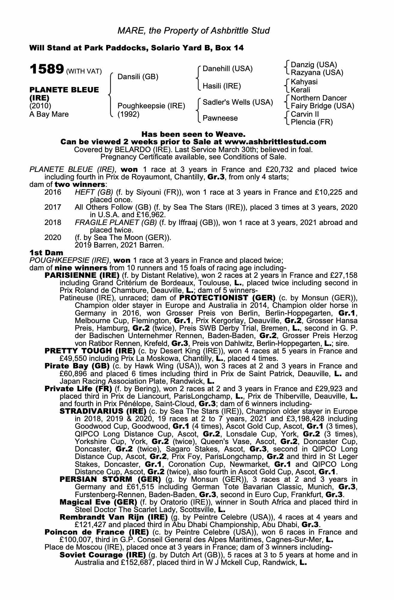 December Mare Sale 2001 lot 1808 Private Life (FR) (F. by Bering), Voute Sales, Agent=>Anthony Stroud Bloodstock 140,000 gns