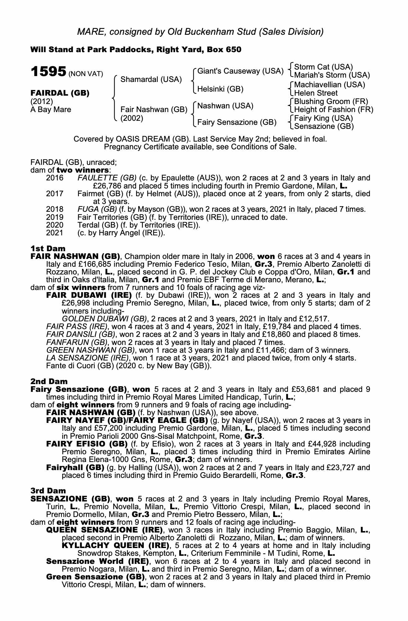 Online Sale - 23rd October 2025 lot 132 Fair Dubawi (IRE) (M. by Dubawi (IRE)), Old Buckenham Stud (Sales Division)=>Lot Not Sold 900 gns