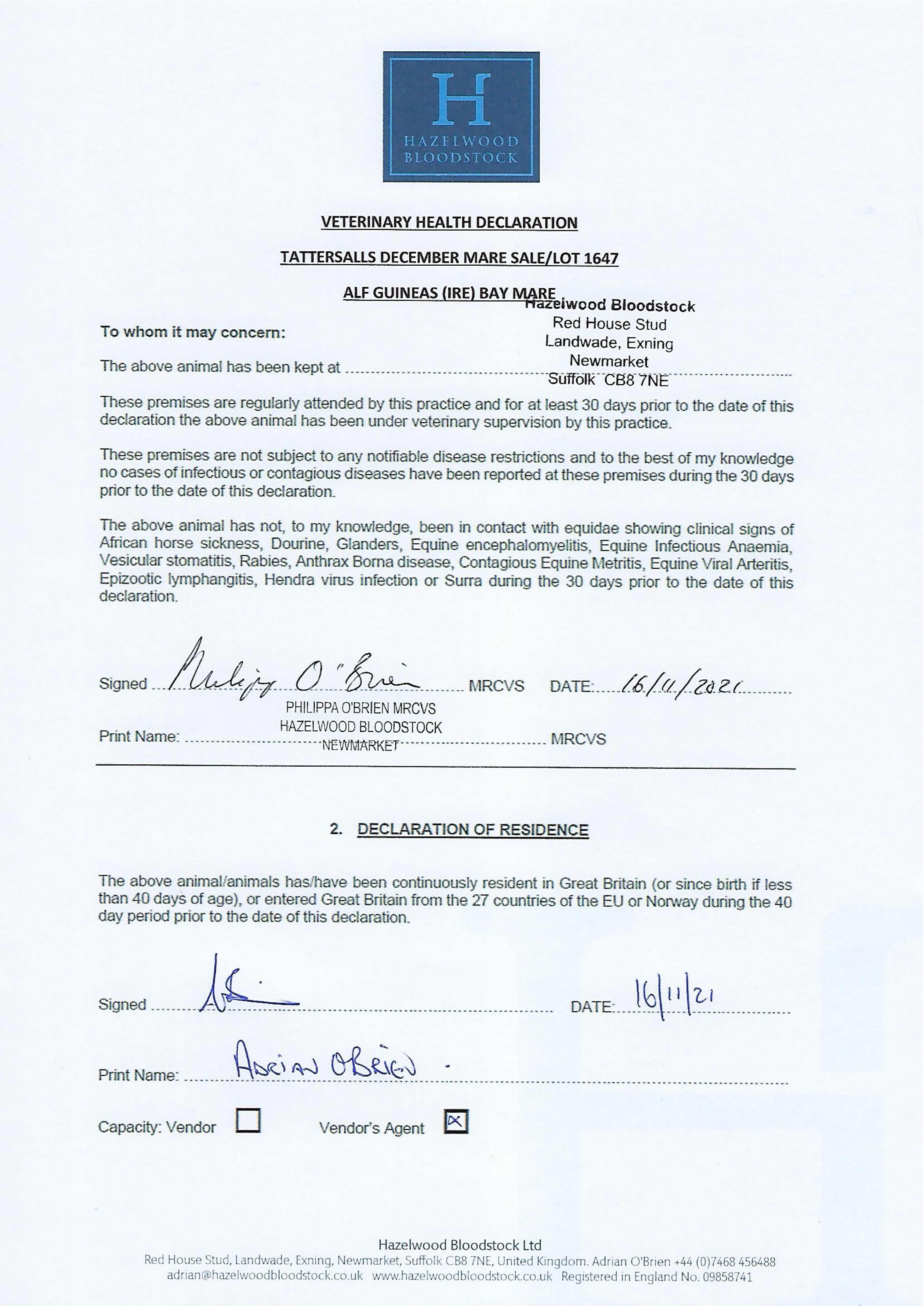 Contact: Adrian O'Brien ✆ +447468456488 ✉ adrian@hazelwoodbloodstock.co.uk