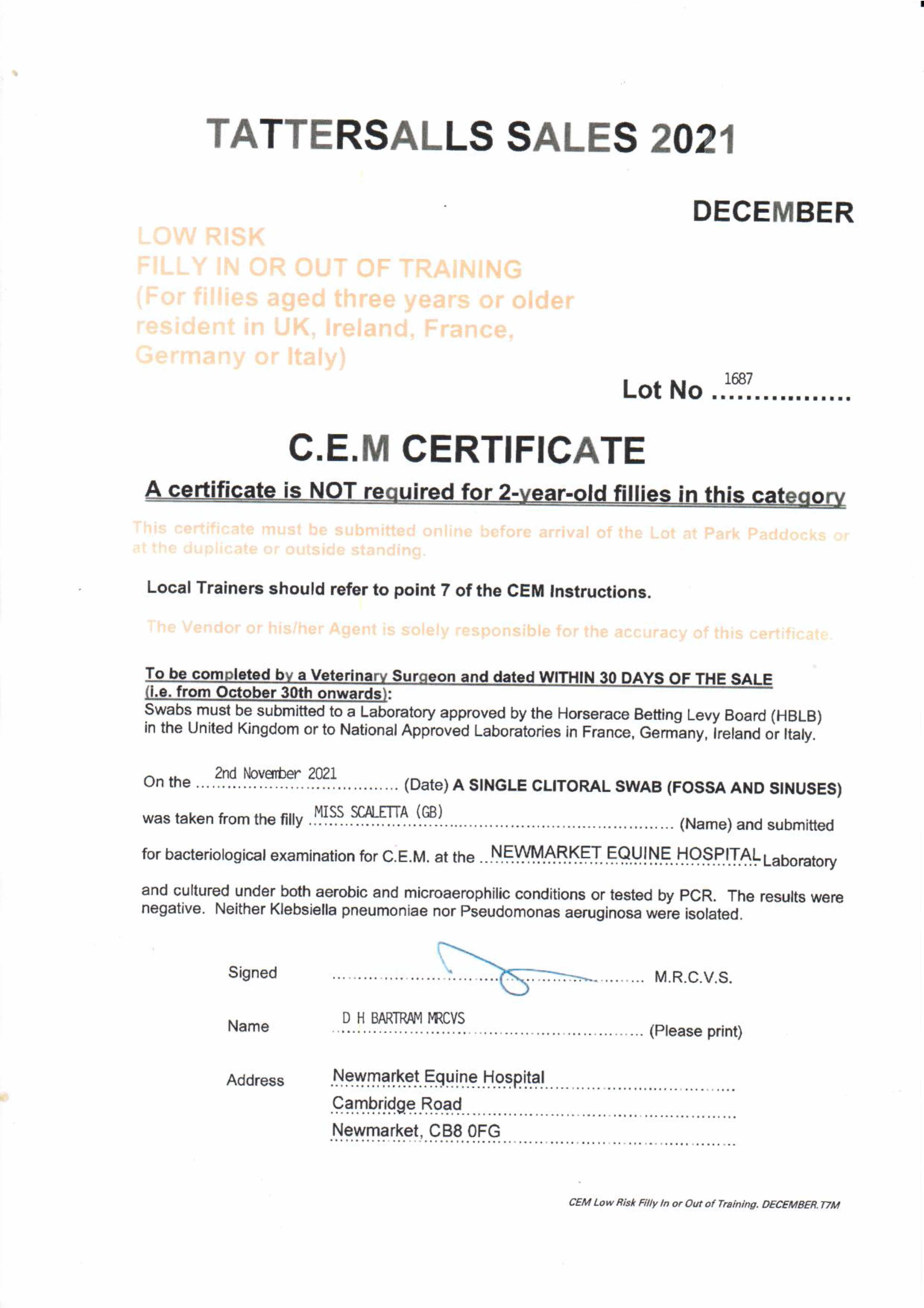 December Mare Sale 2021 lot 1634 Miss Cap Estel (GB) (M. by Hernando (FR)), Lanwades Stud=>LM Stallions 5,000 gns