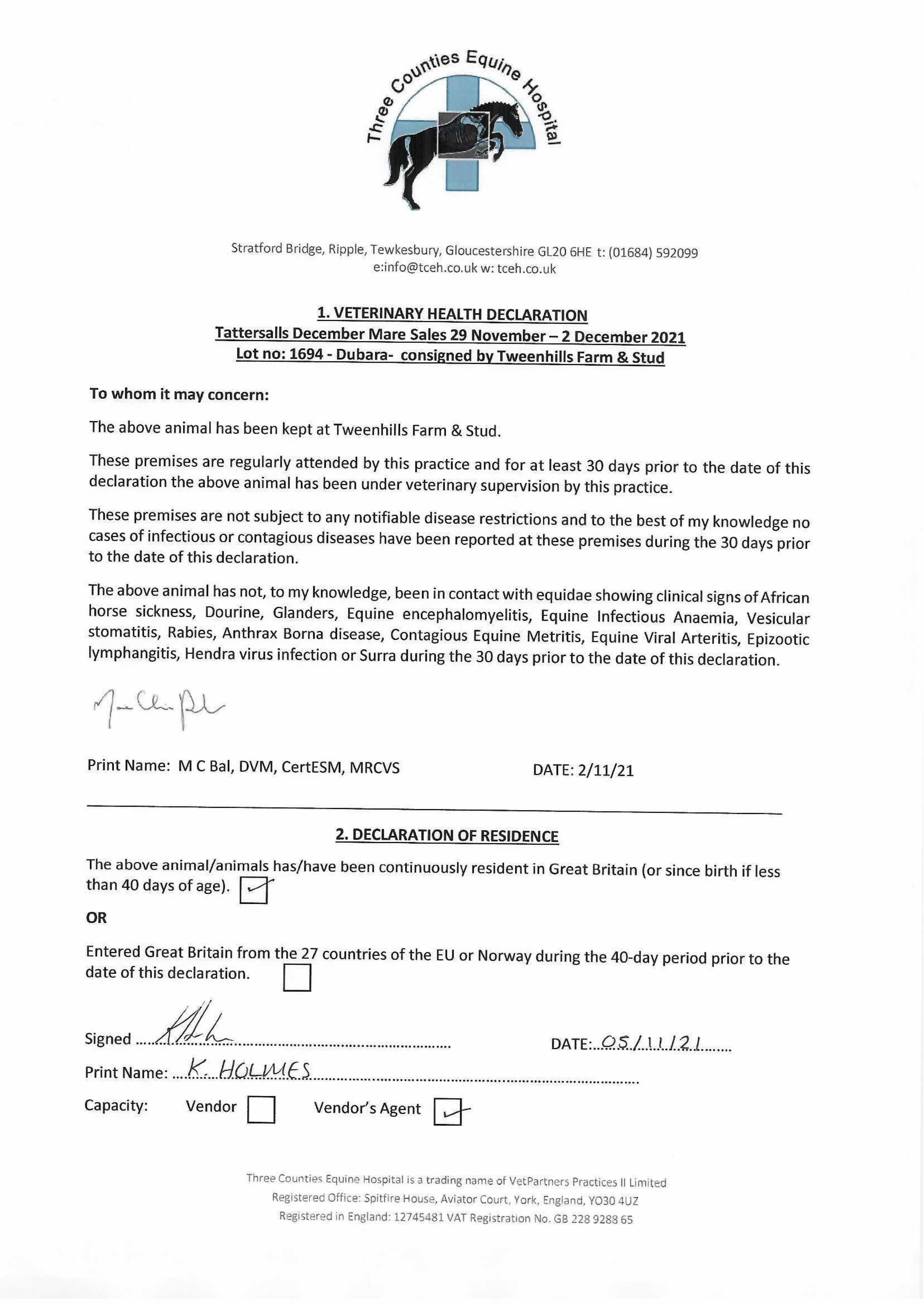 Consignor: Tweenhills Farm & Stud