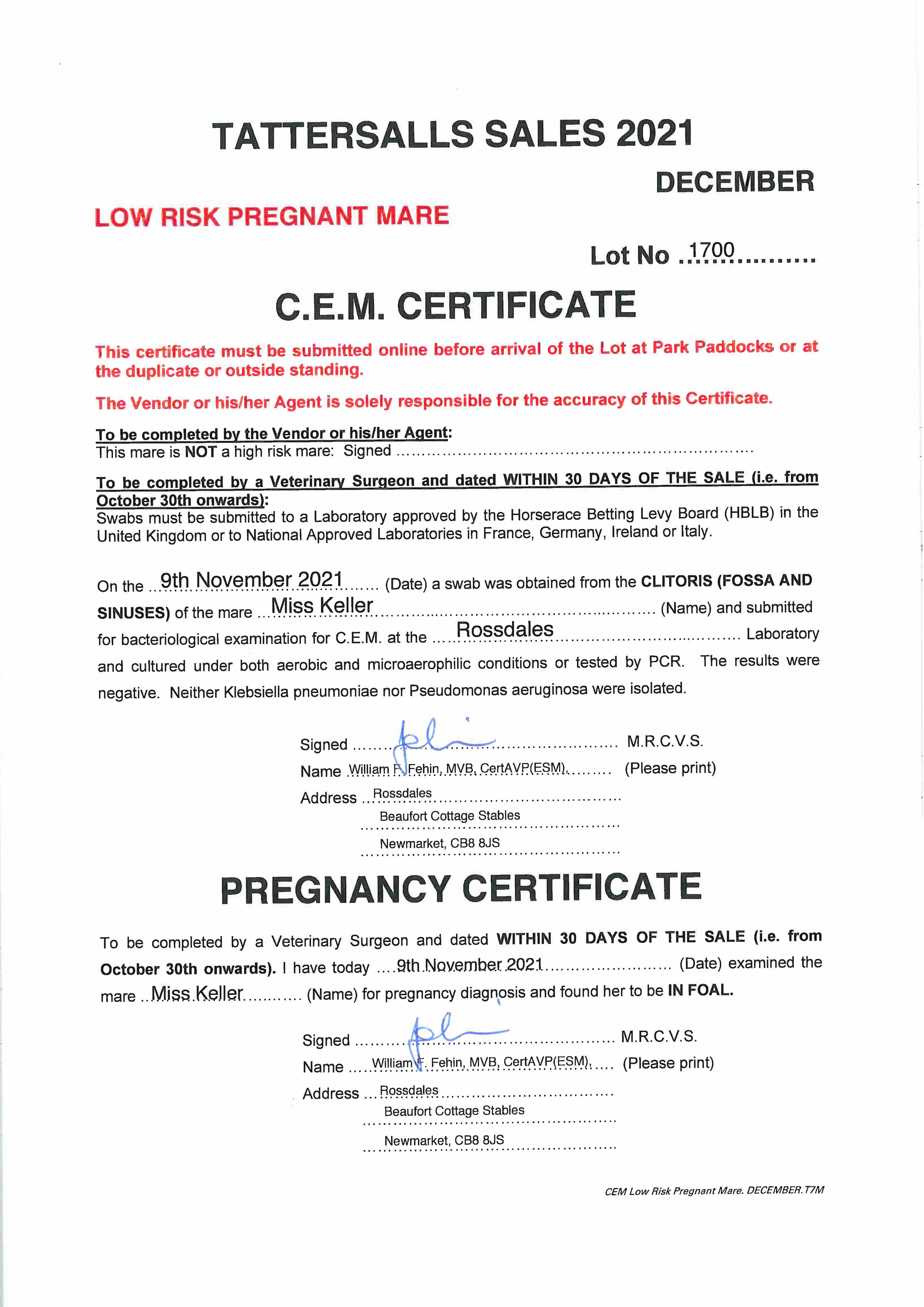 December Mare Sale 2011 lot 1435, Three Chimneys Sales, USA (Agent)=>Waratah Thoroughbreds 625,000 gns