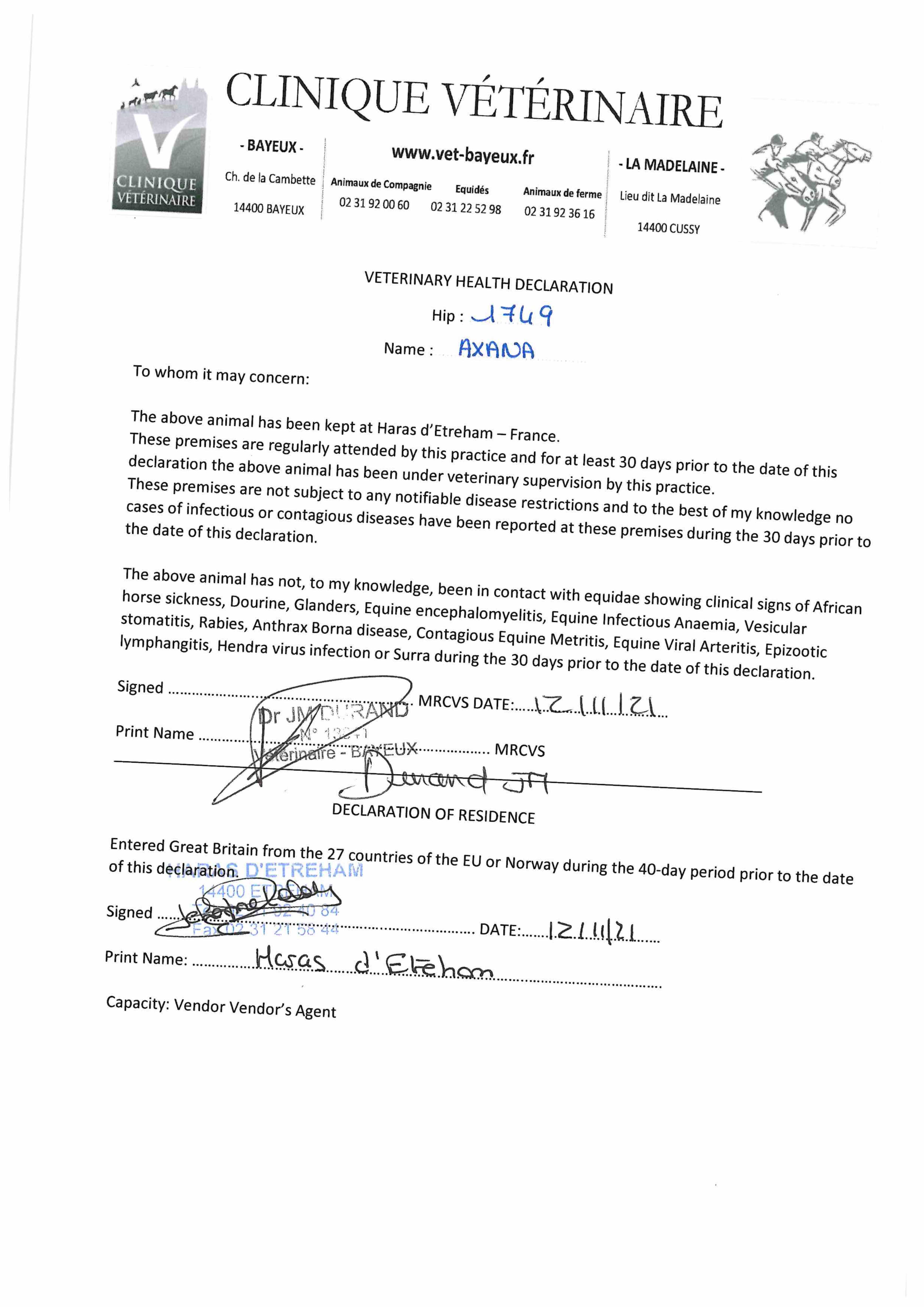 Consignor: Haras D'Etreham, France