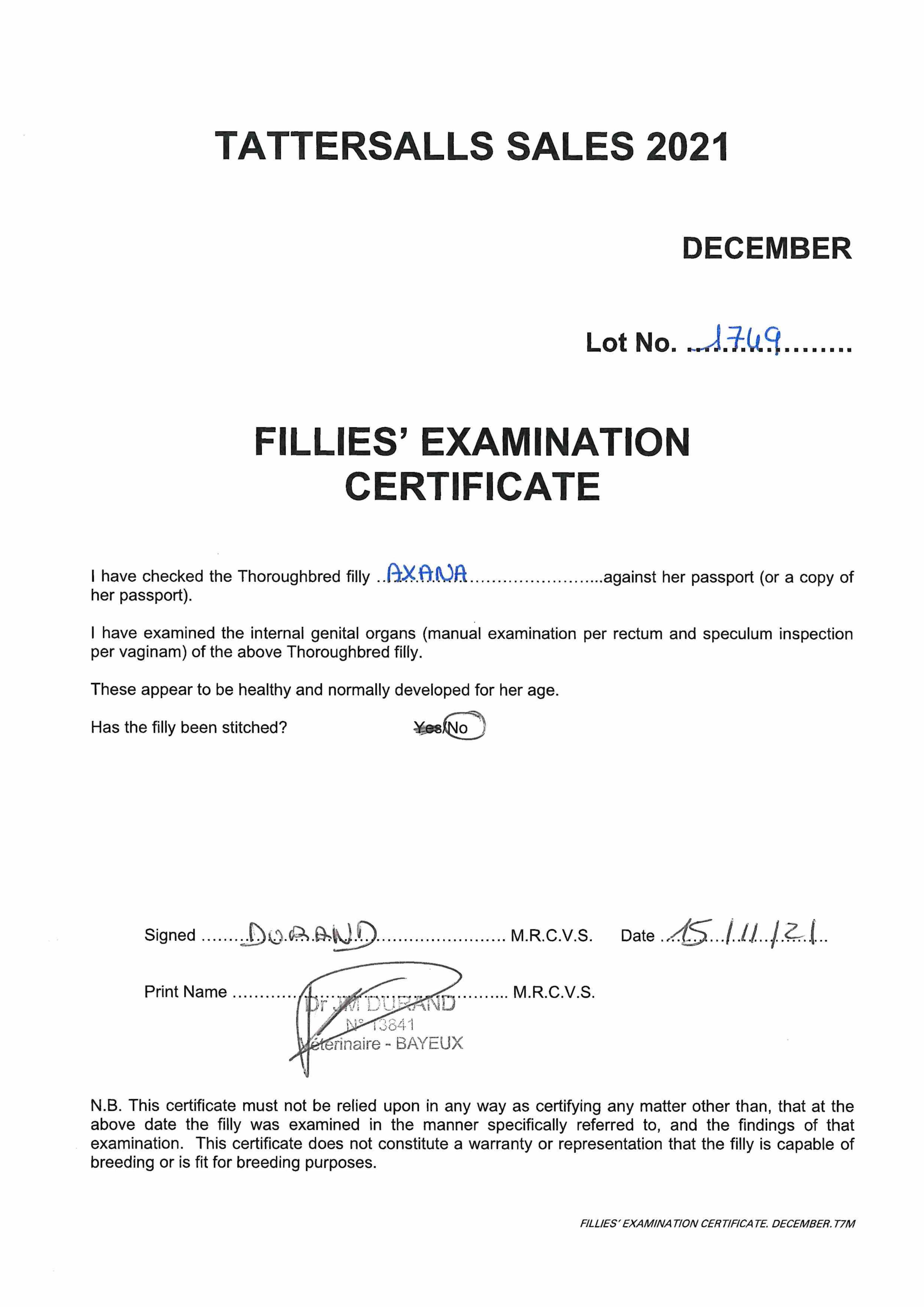 December Mare Sale 2022 lot 1888, Voute Sales Ltd. (Agent)=>Vendor 150,000 gns