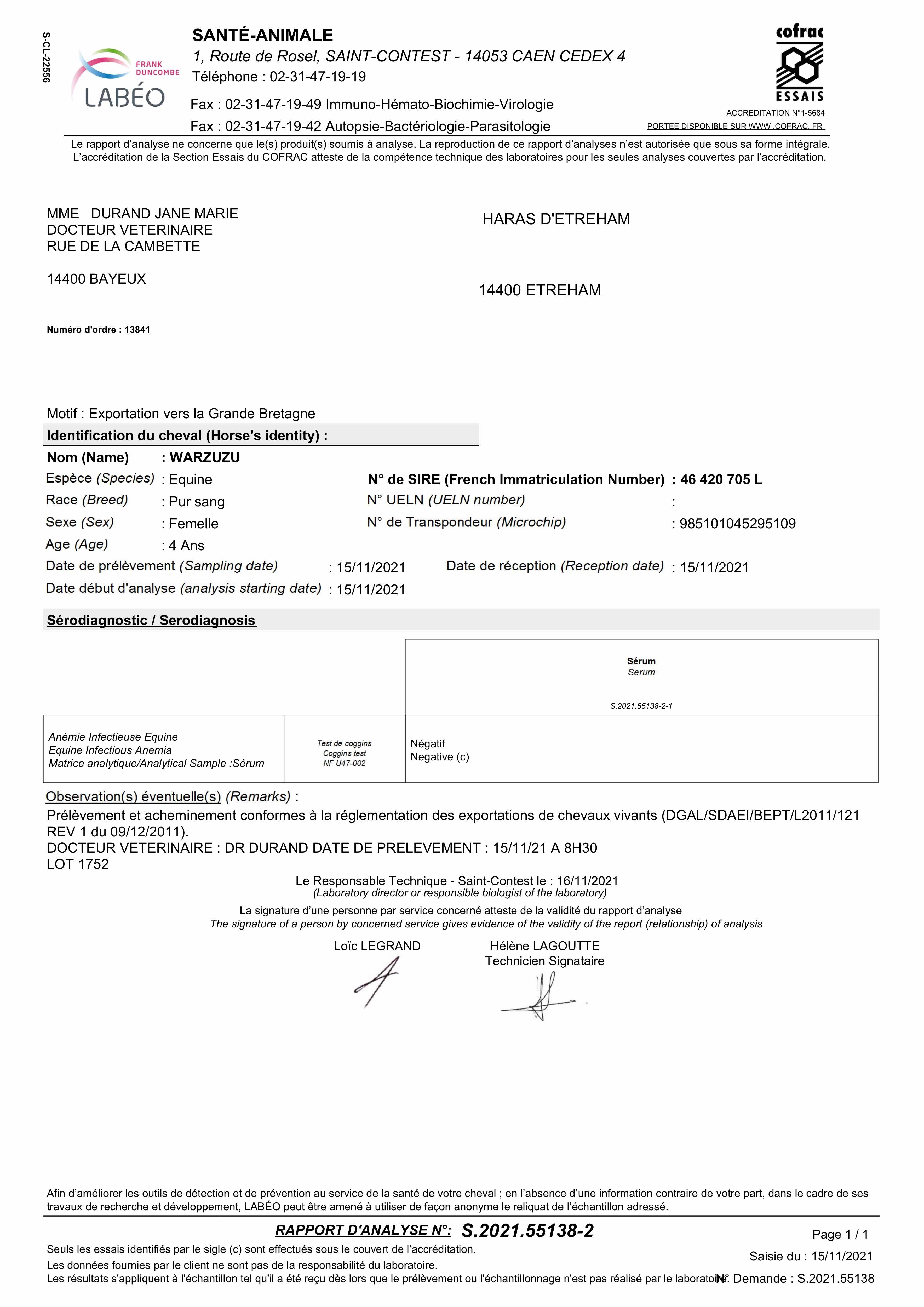 Piroplasmosis Certificate