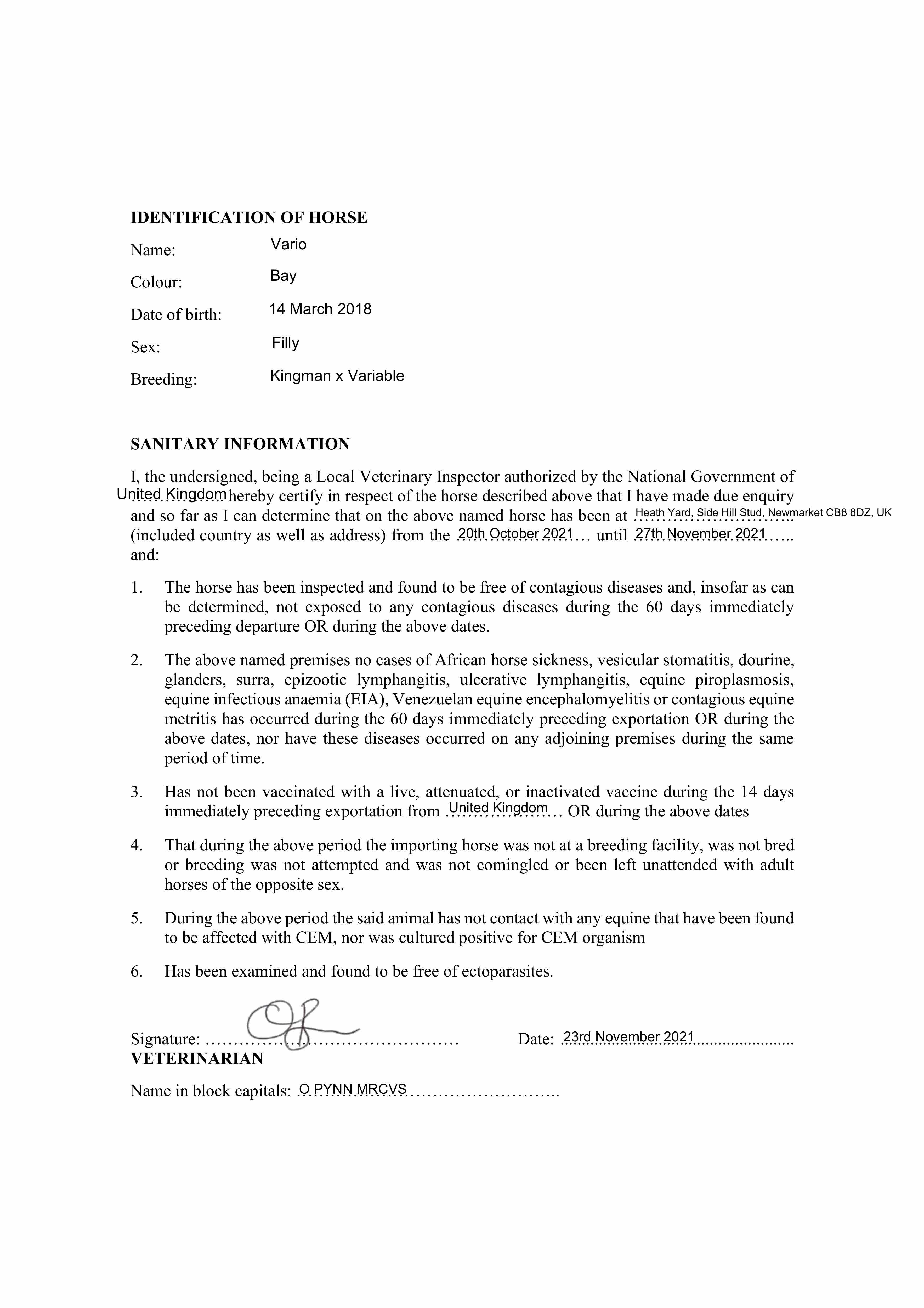 Health Certificate