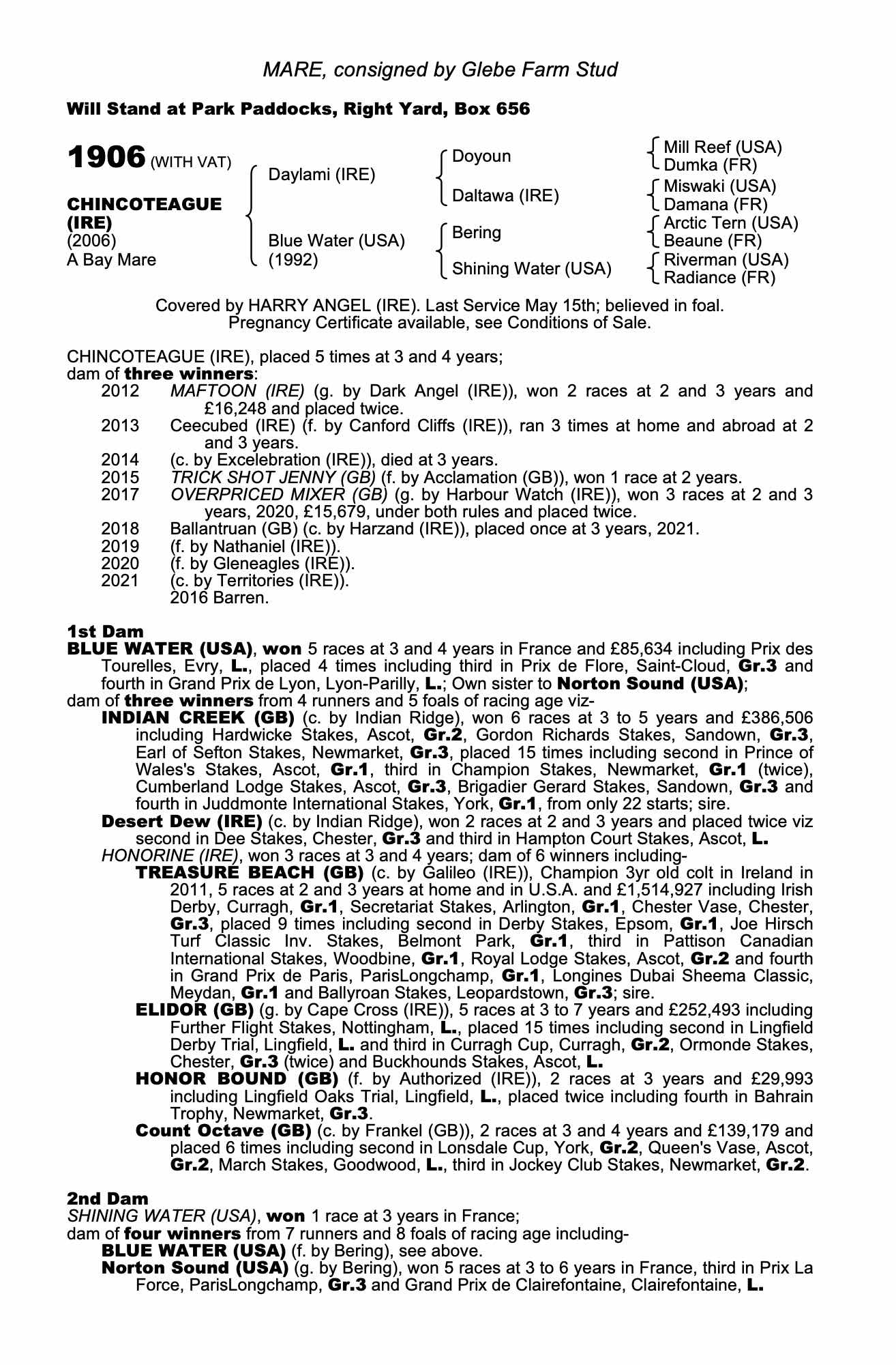 Online Sale - 18th January 2024 lot 54 Glenteague (GB) (F. by Gleneagles (IRE)), R D Gough=>Hansbury Stud 1,800 gns