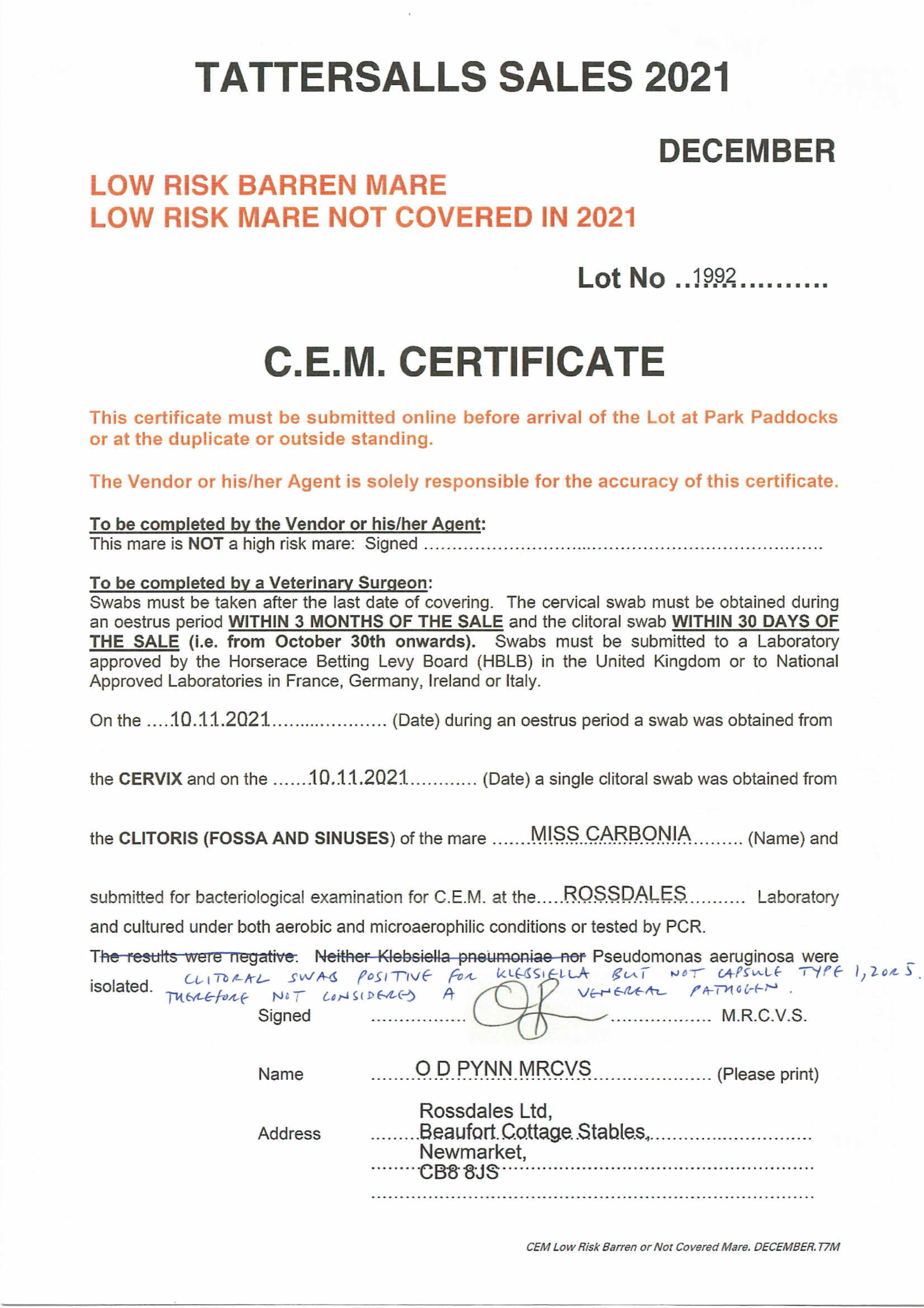 Ascot March Sale 2022 lot 60 Sardinian Star (GB) (F. by Storm The Stars (USA)), Godolphin=>Anthony Mccann £1,500