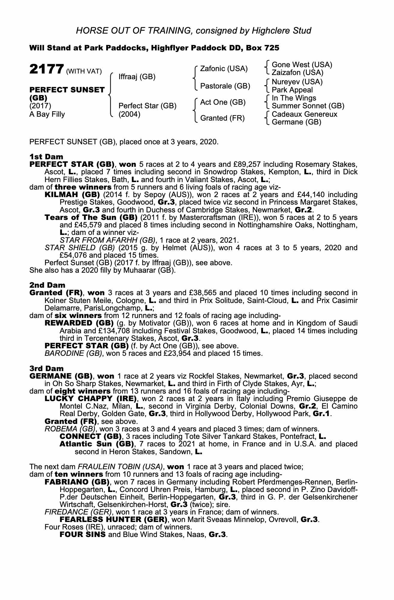 Contact: Dr Bridget Drew ✆ 01256 893398 ✉ Bridget.Drew@MildmayFarmandStud.com