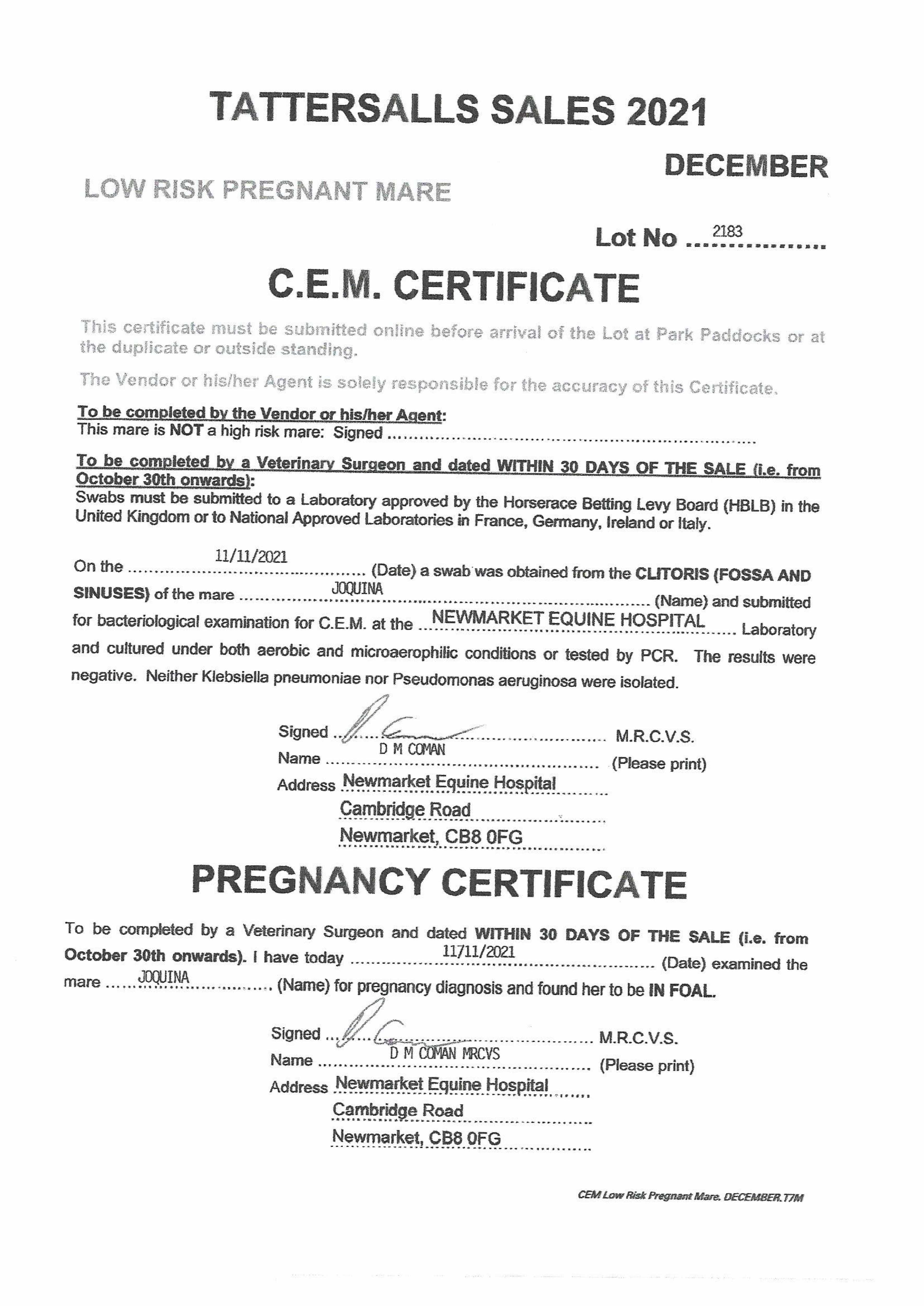 November Sale 2023 lot 40 Lady Clemmie (GB) (F. by Churchill (IRE)), Harraton Stud (J. Feilden)=>Lot Not Sold