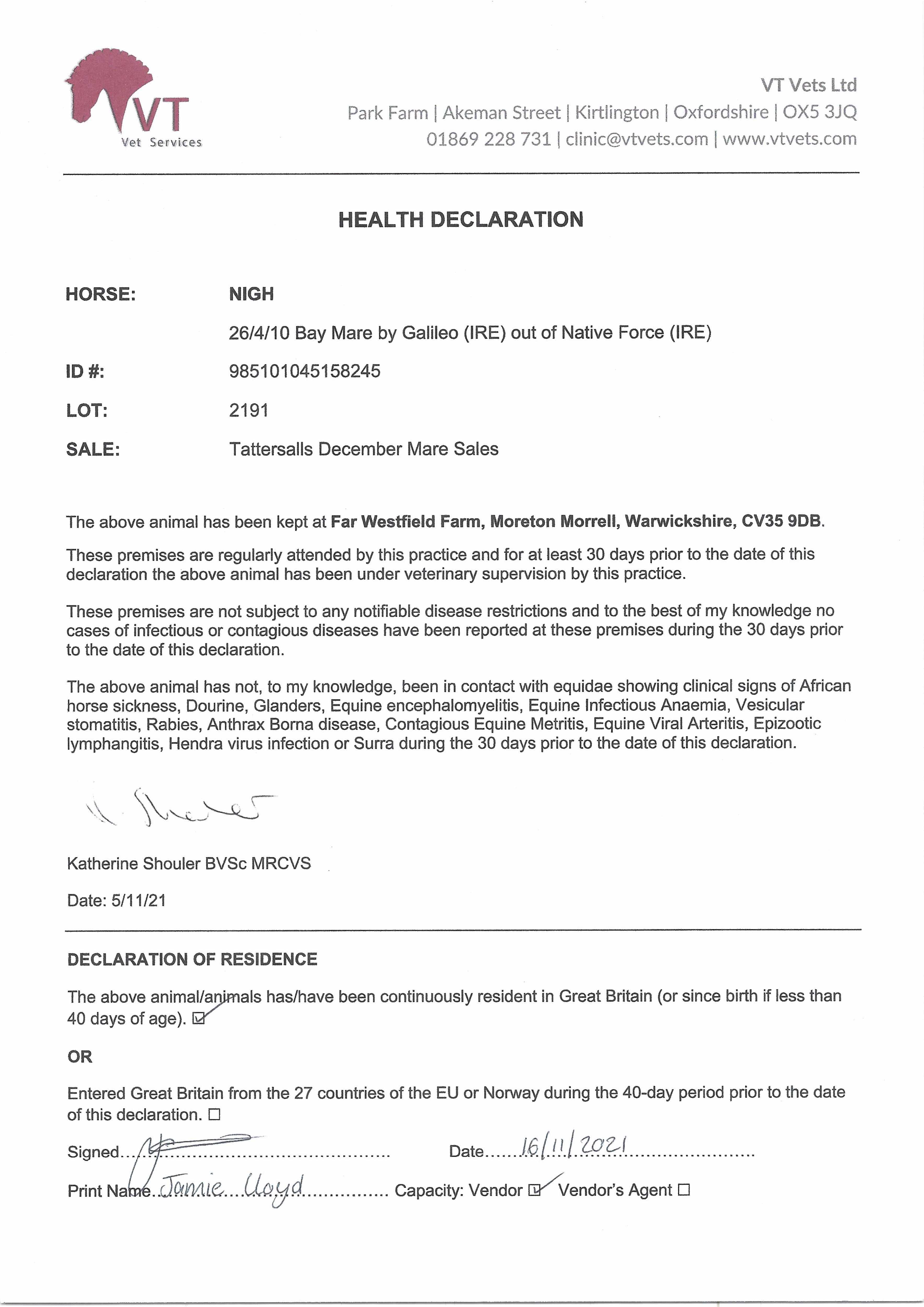 December Mare Sale 2020 lot 1522, Far Westfield Farm=>Lot Not Sold 48,000 gns