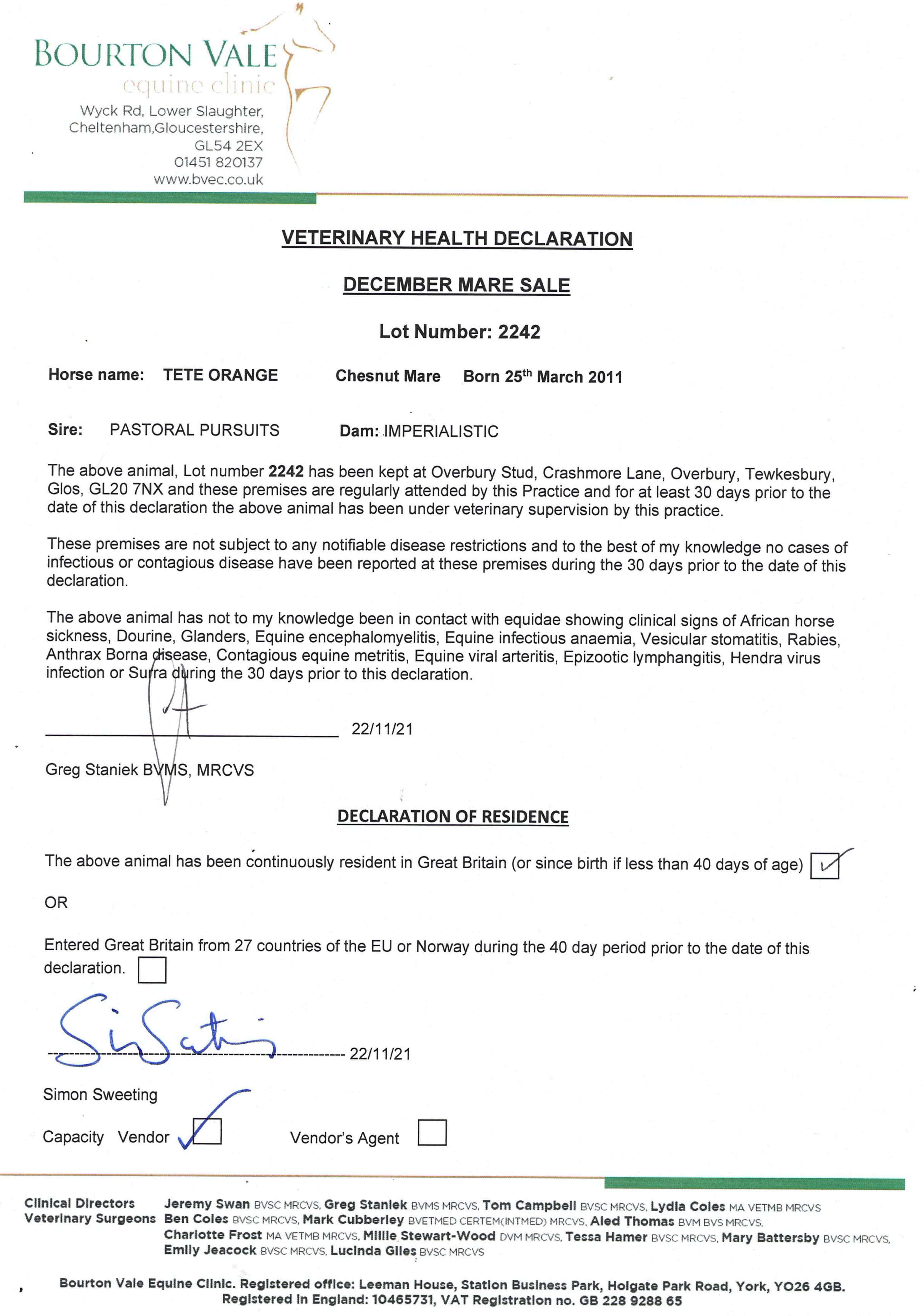 December Foal Sale 2021 lot 244 F. by Le Brivido (FR) 2021, Overbury Stud=>Simon Heaney 1,000 gns