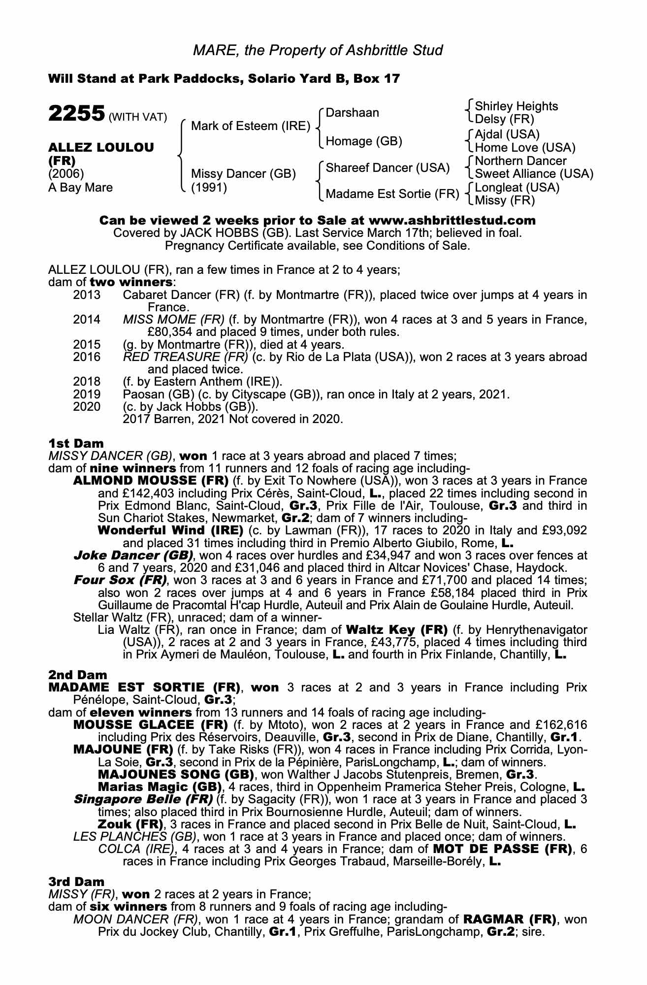 Consignor: Ashbrittle Stud