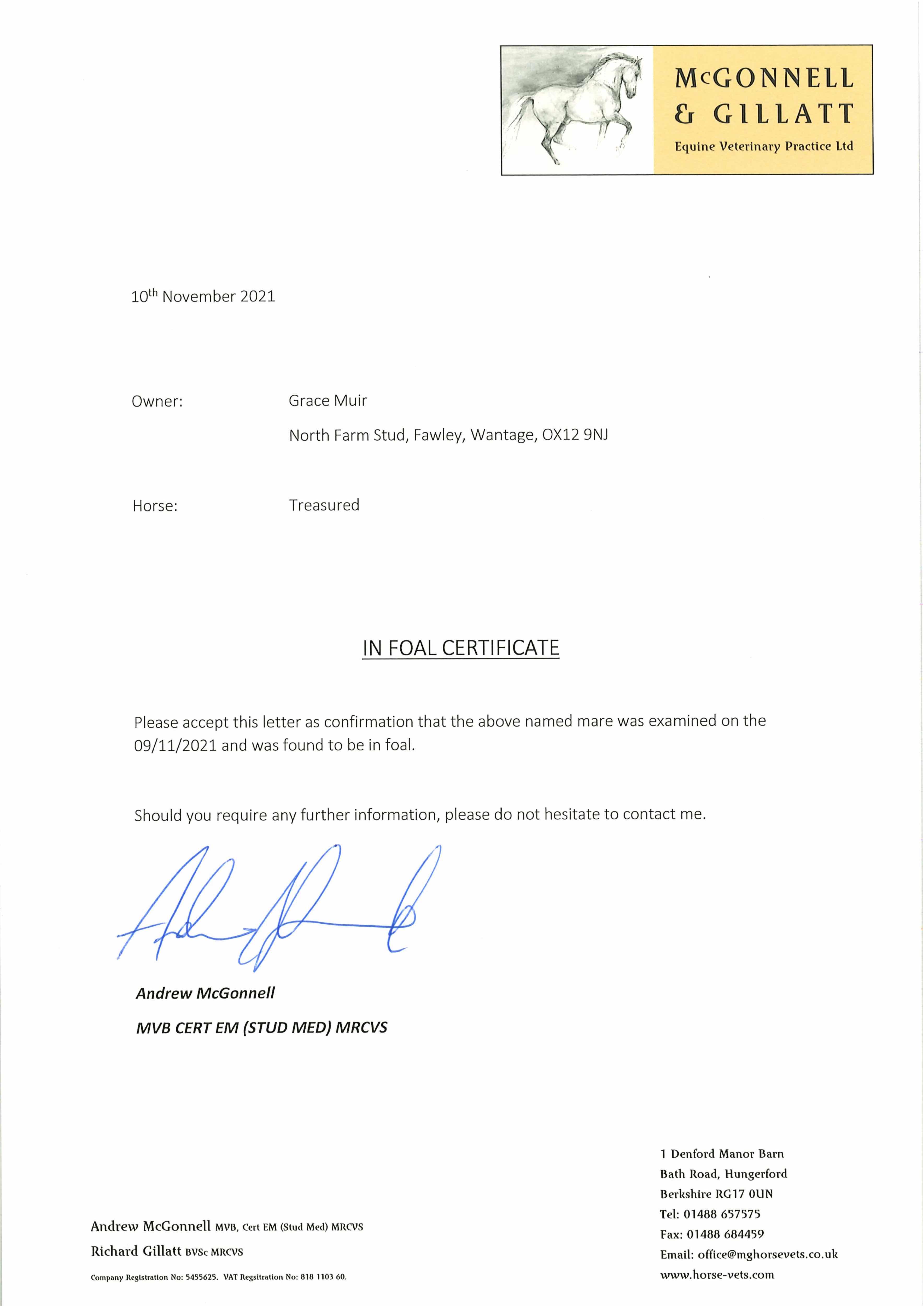 Contact: Grace Muir ✆ 07770877543 ✉ grace@northfarmstud.com
