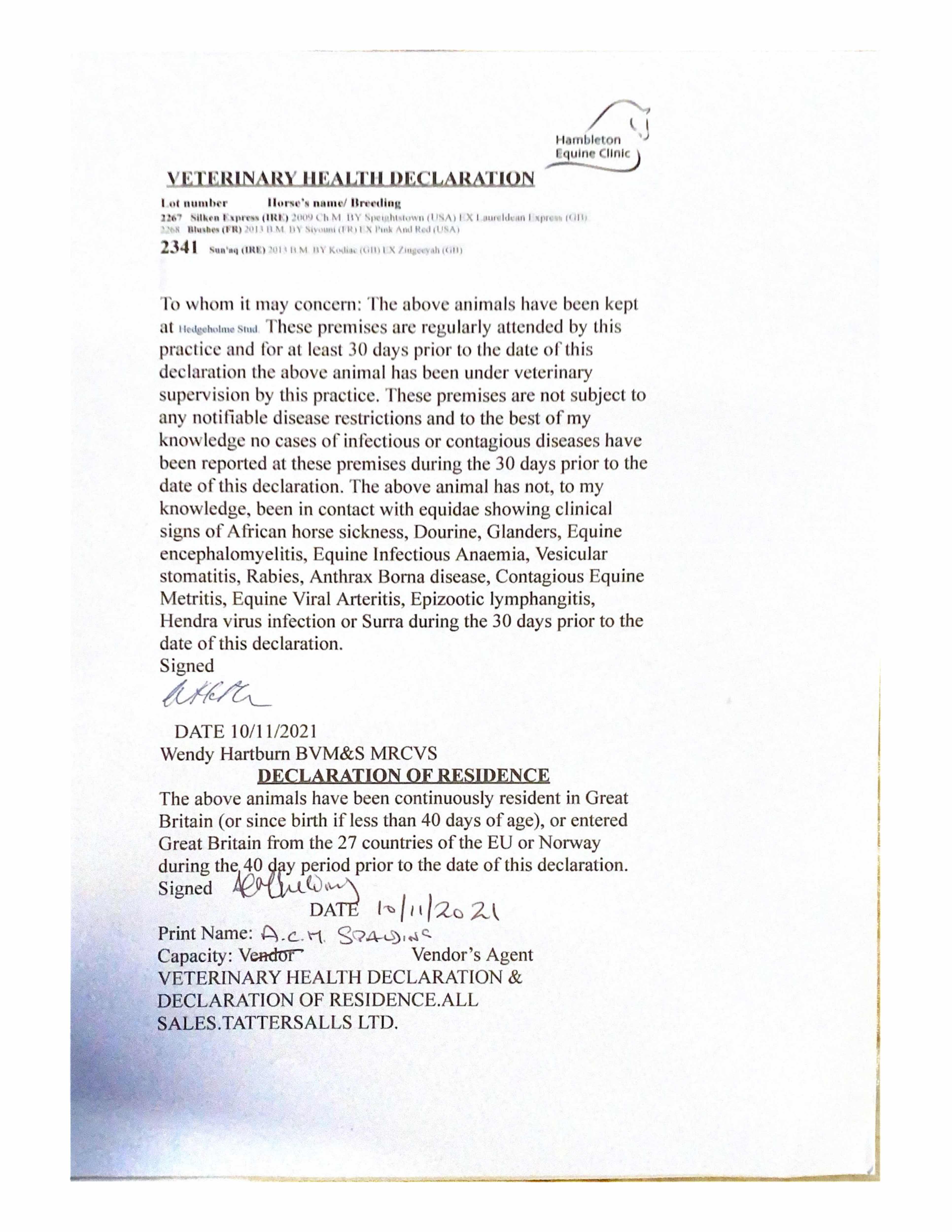 October Yearling Sale, Book 4 2023 lot 2026 F. by Portamento (IRE) 2022, Hedgeholme Stud=>H W R S 1,000 gns