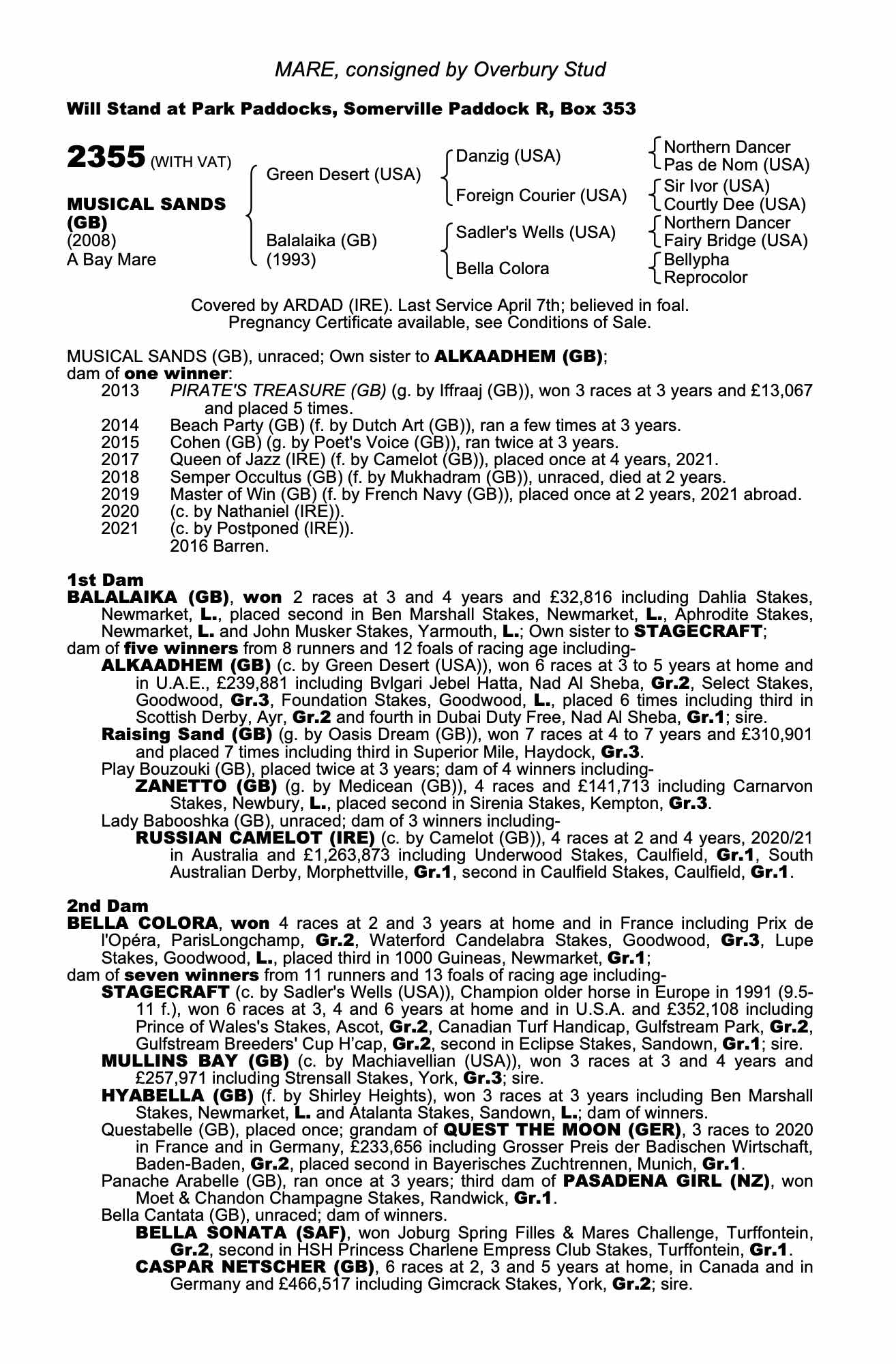 Houghton Yearling Sale 2001 lot 2 C. , Meon Valley Stud=>Shadwell Estate Company 200,000 gns