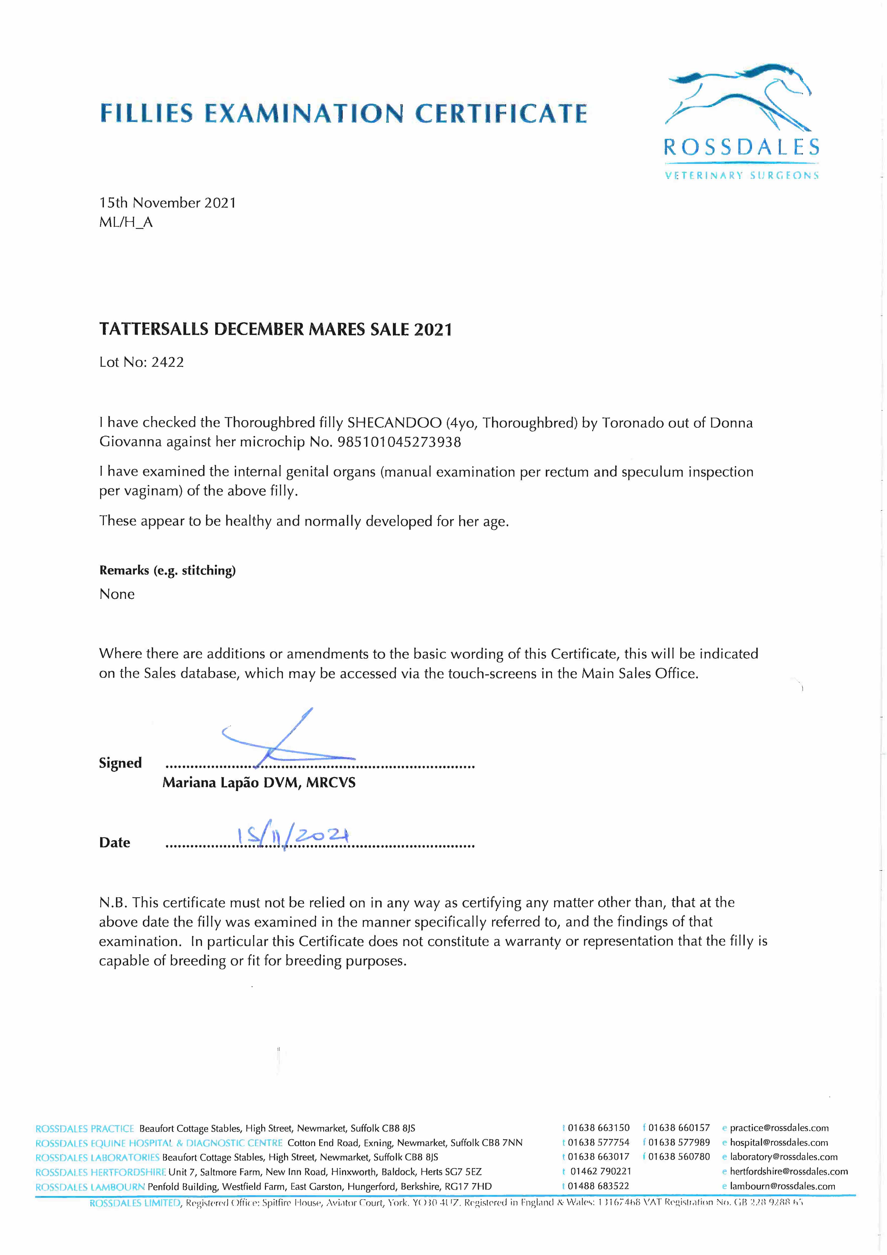 December Yearling Sale 2010 lot 254 F. by High Chaparral (IRE) 2009, Houghton Bloodstock=>Lot Not Sold