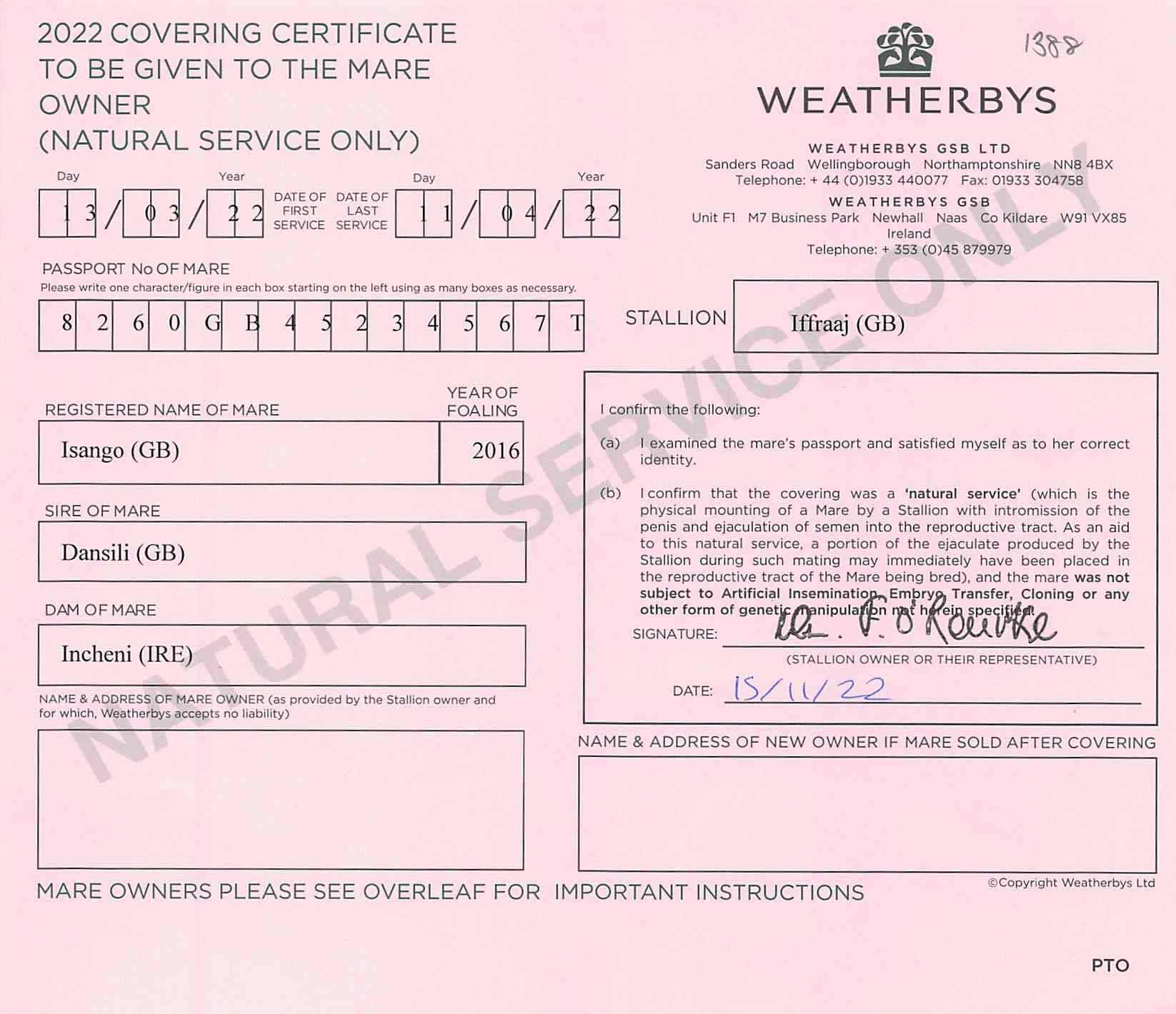 December Mare Sale 2023 lot 1658 Inchina (GB) (M. by Montjeu (IRE)), Hascombe & Valiant Stud Ltd.=>Lot Not Sold 11,000 gns