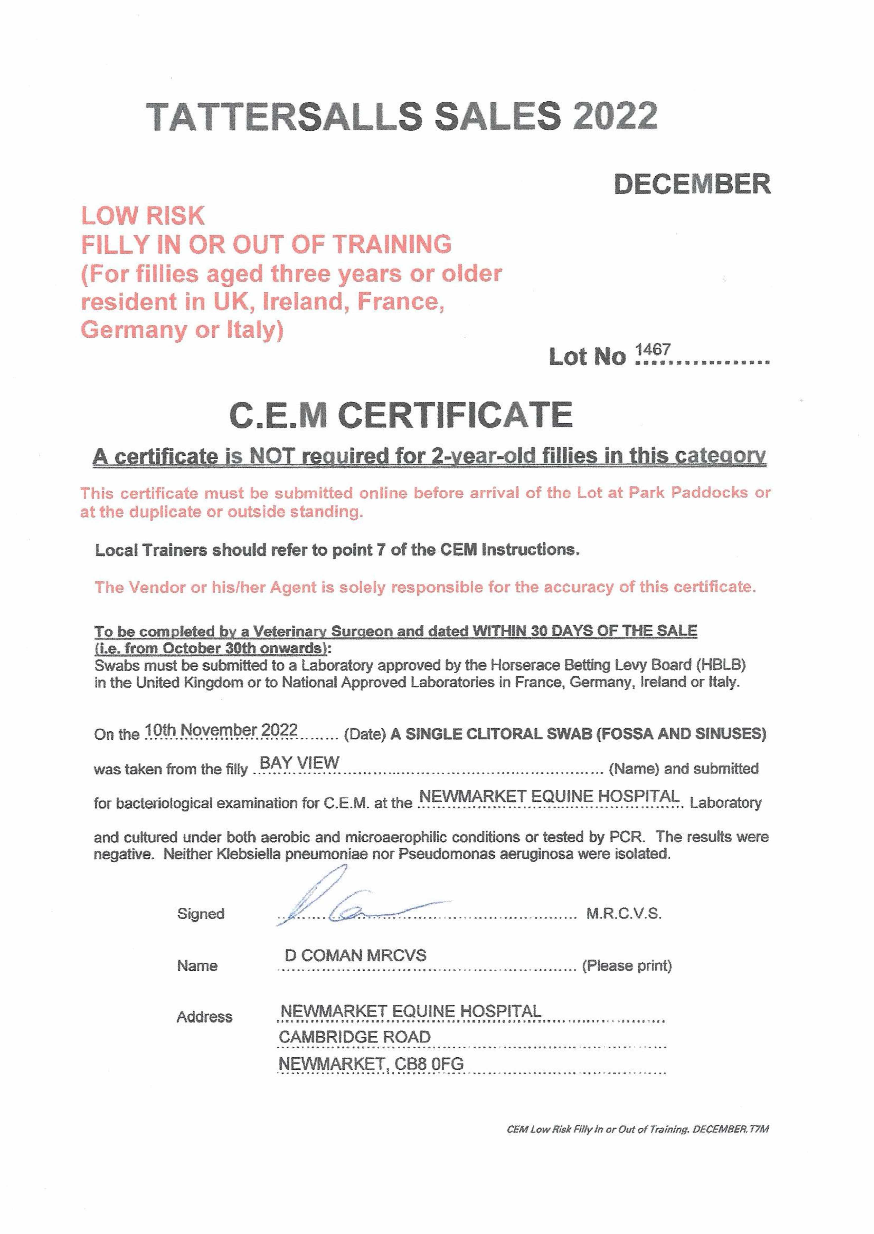 December Mare Sale 2023 lot 1691 Candy Kitchen (IRE) (M. by Lope de Vega (IRE)), The Castlebridge Consignment=>Esageruma Nein SAS DI Franco Barberi 180,000 gns