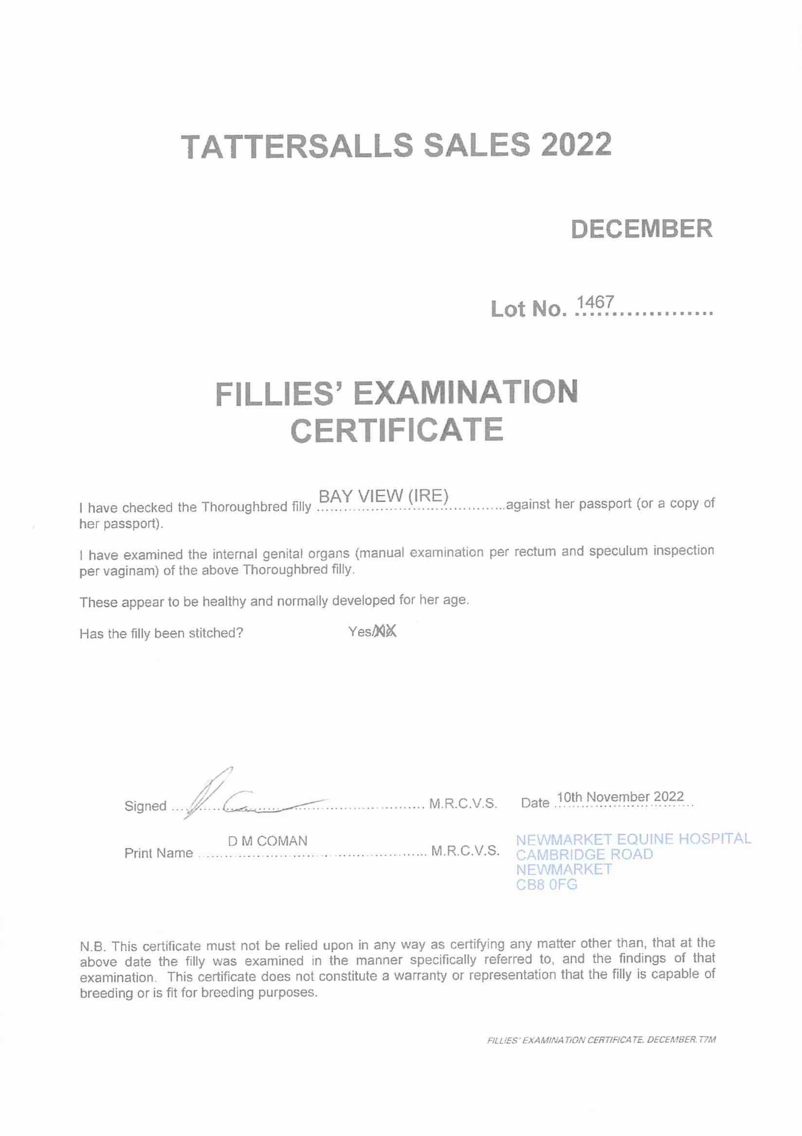 December Mare Sale 2022 lot 2248 Candy Kitchen (IRE) (F. by Lope de Vega (IRE)), Fitzroy House (M. Bell)=>Michelle McParland 75,000 gns