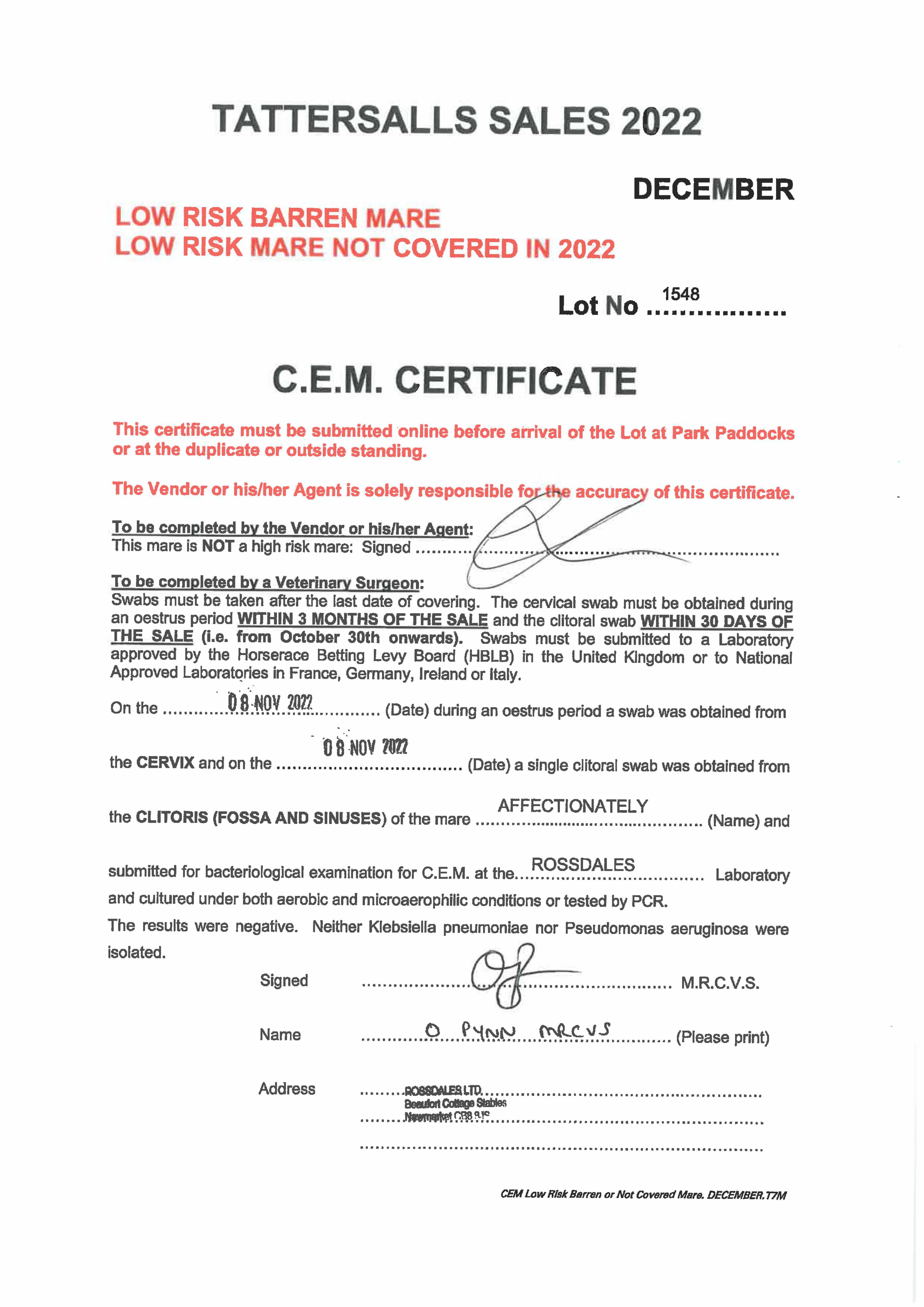 December Mare Sale 2018 lot 1507, Voute Sales Ltd. (Agent)=>Rabbah Bloodstock 75,000 gns