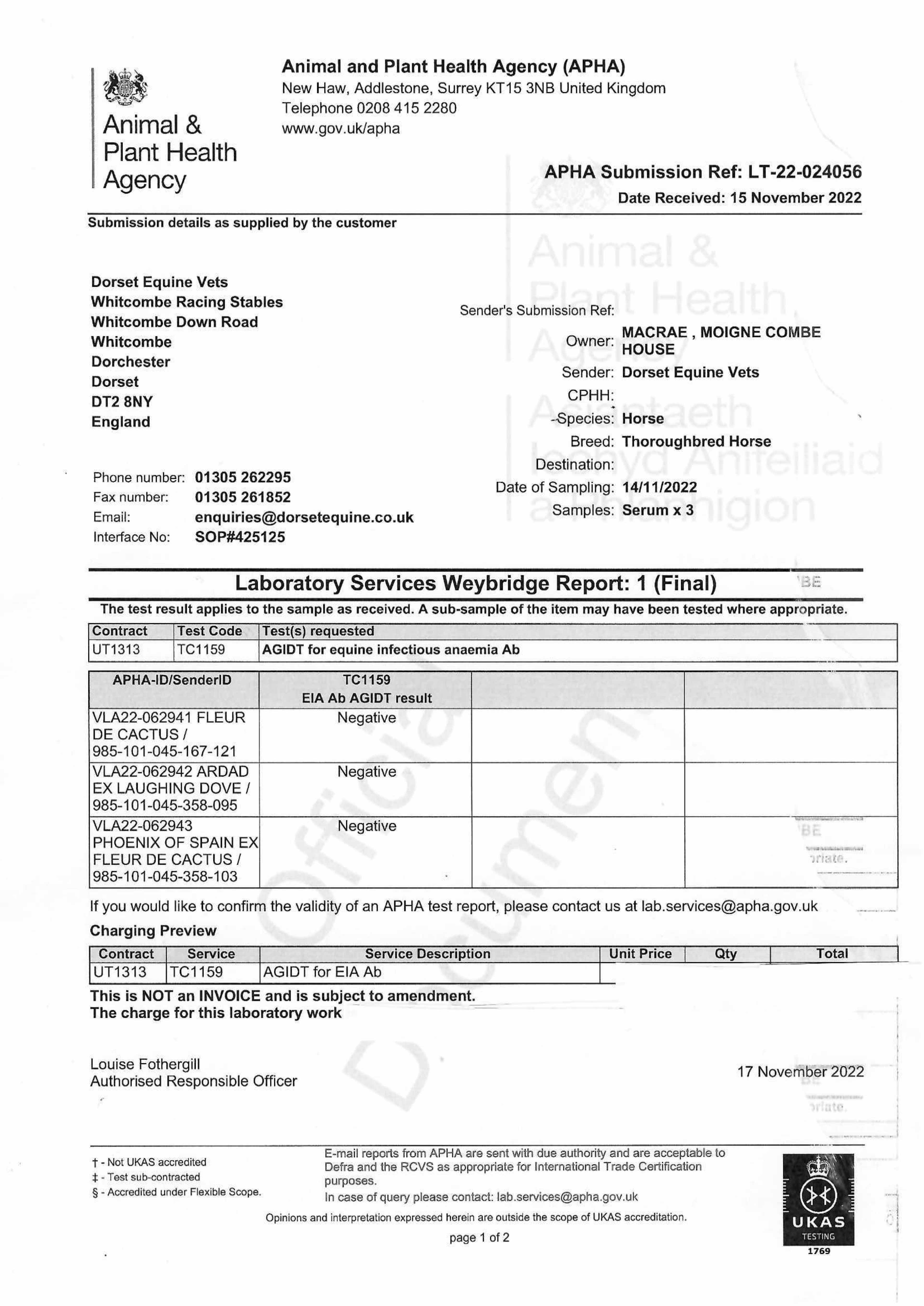 Consignor: Moigne Combe Stud