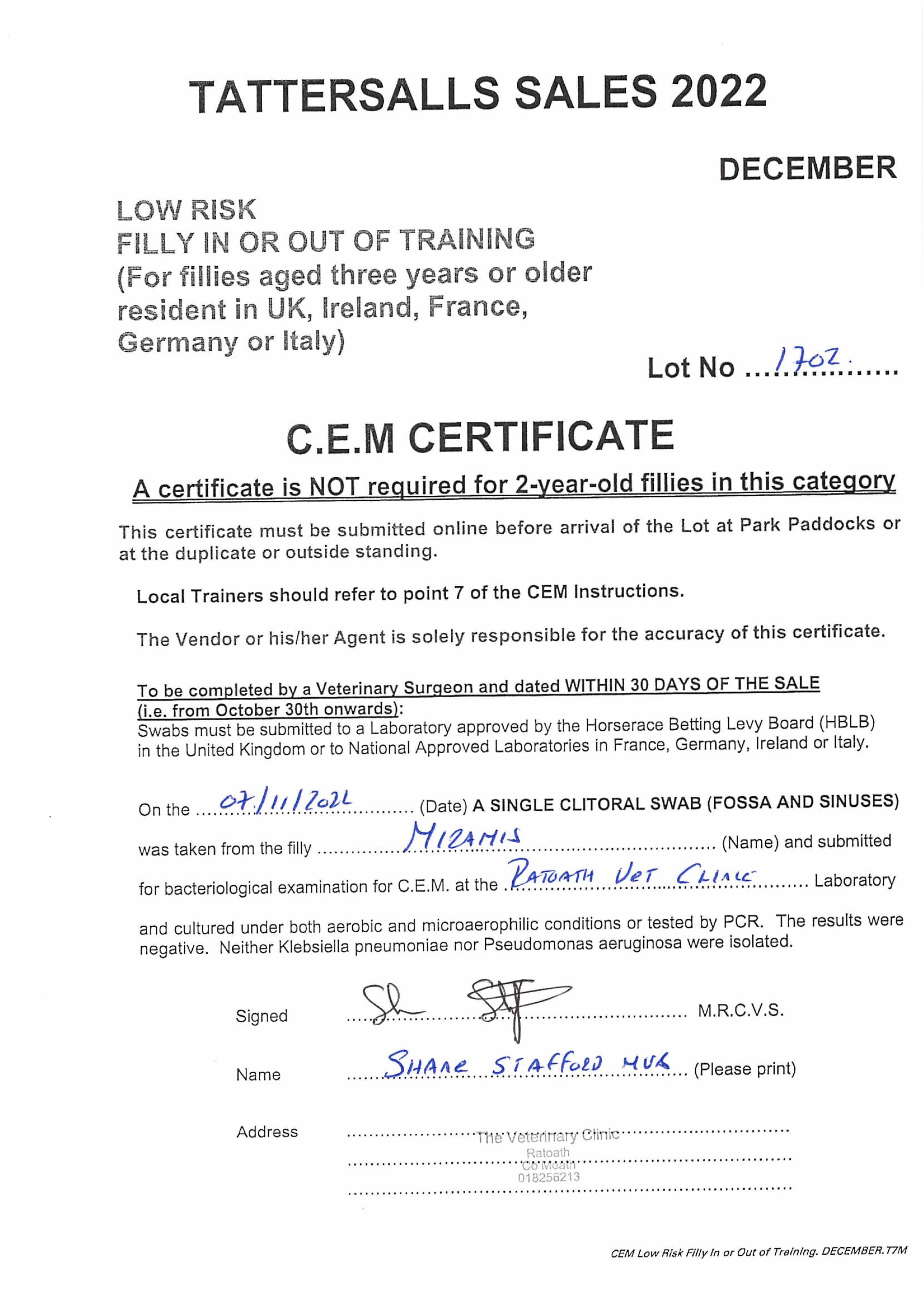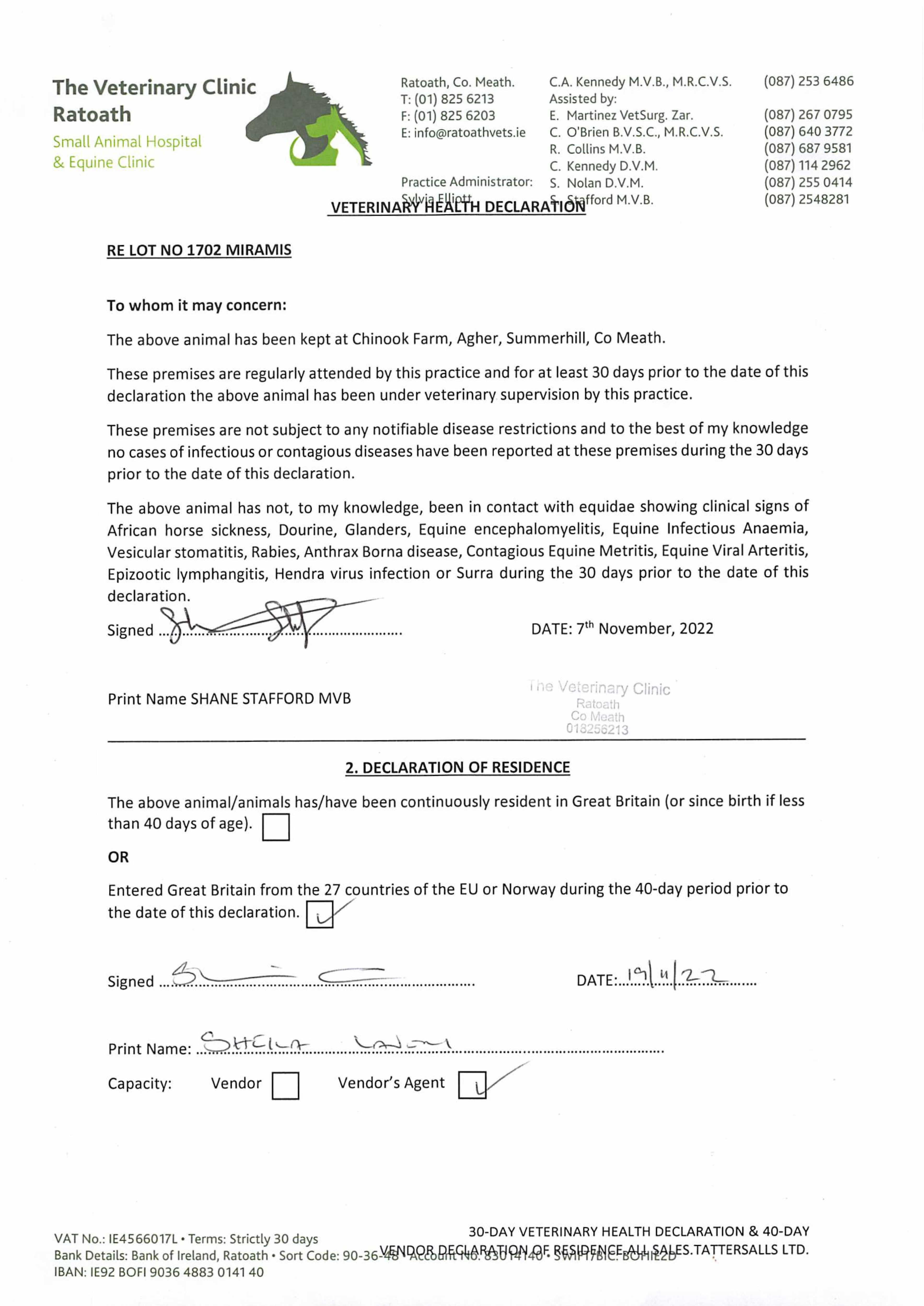 Consignor: Chinook Stables, Ireland (Ms S. Lavery)