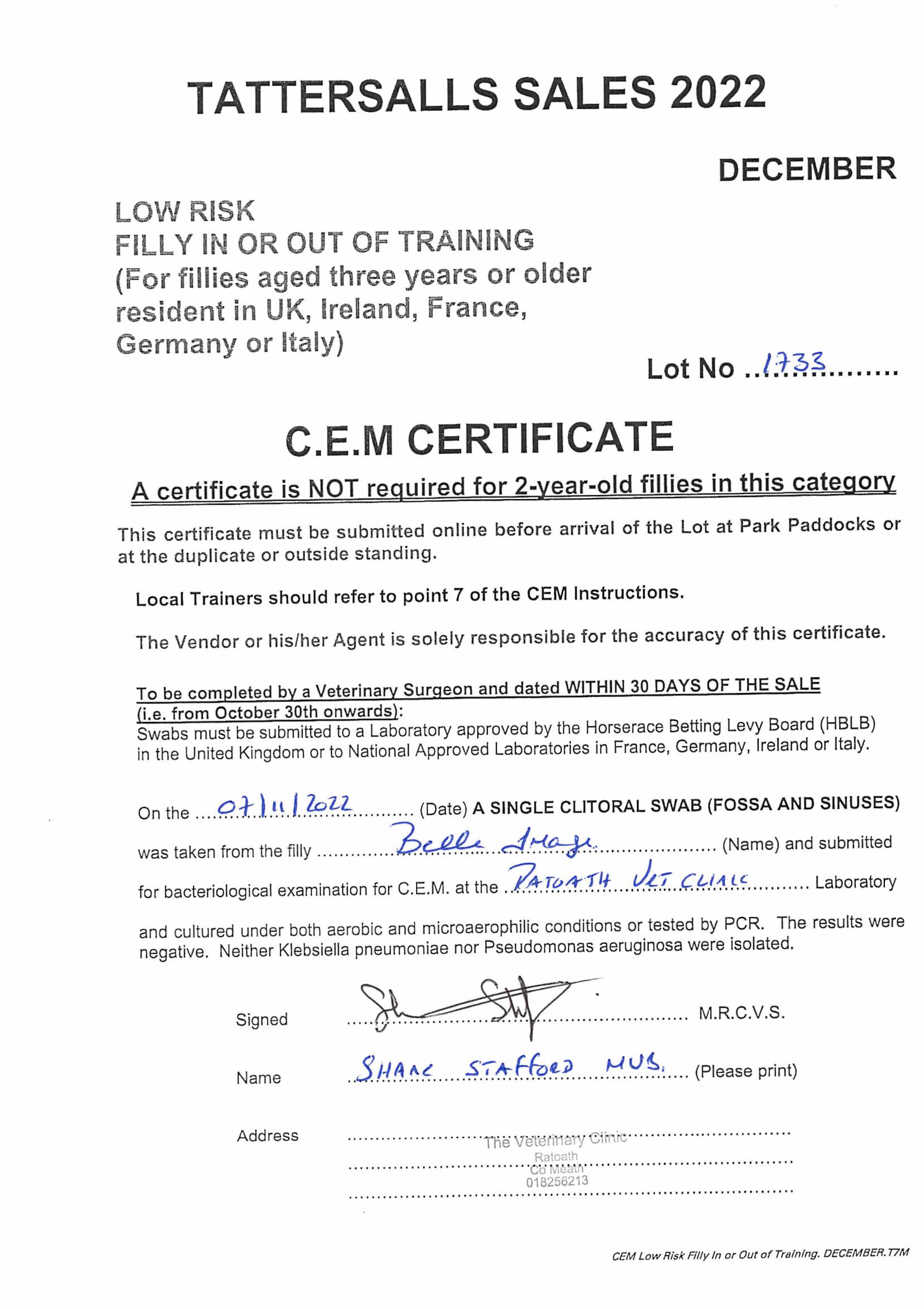 Consignor: Chinook Stables, Ireland (Ms S. Lavery)