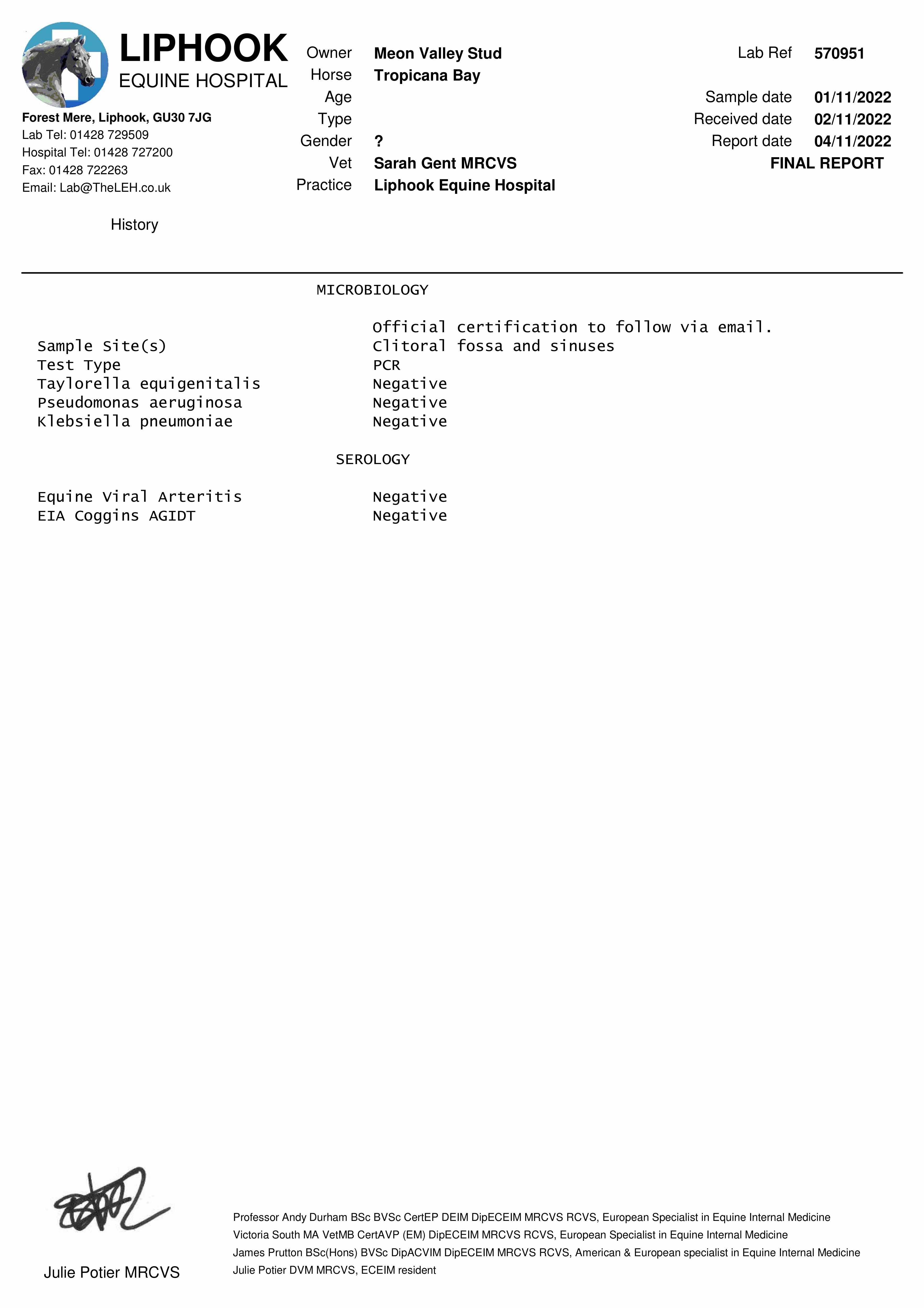 Consignor: Meon Valley Stud