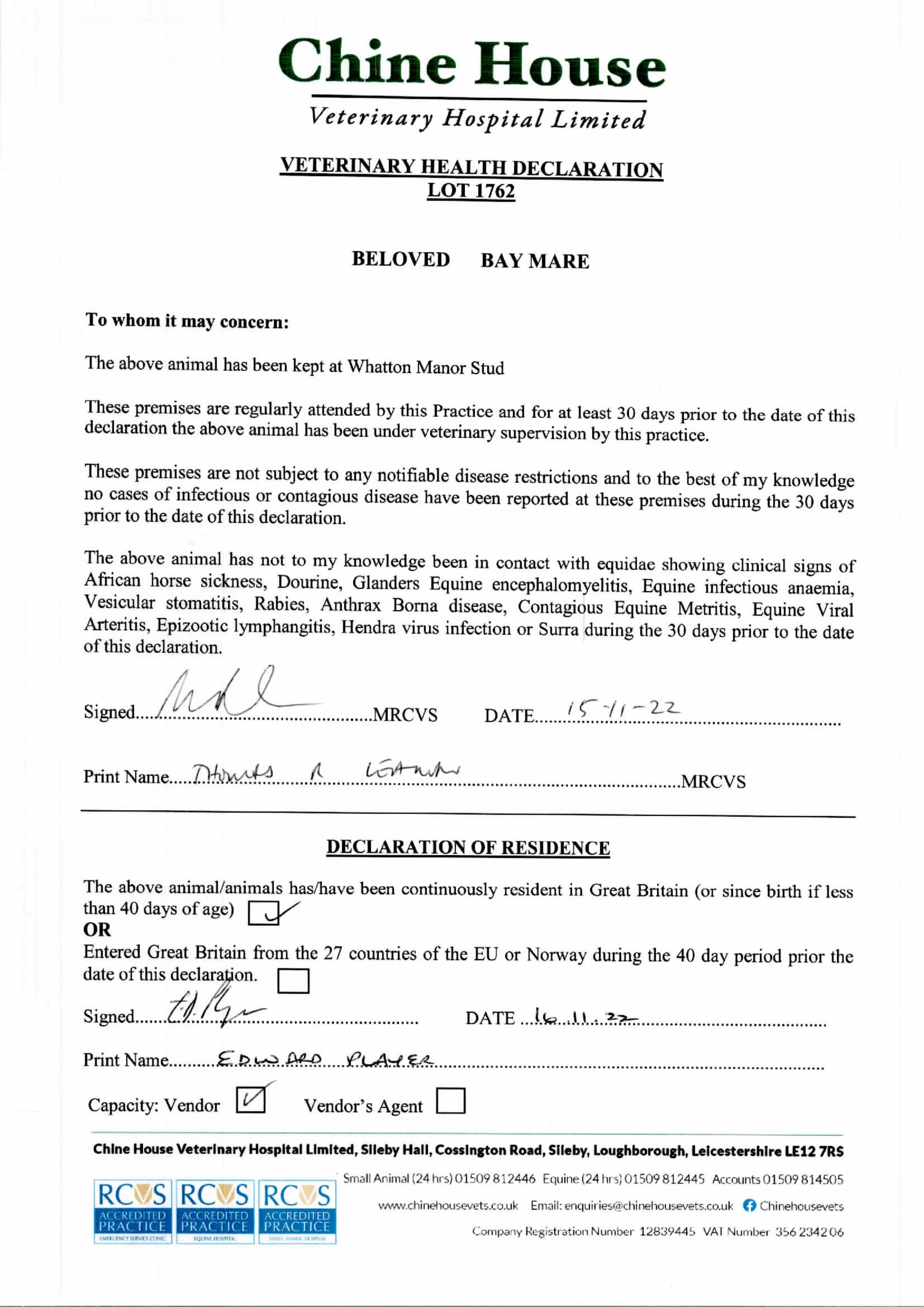 Consignor: Whatton Manor Stud