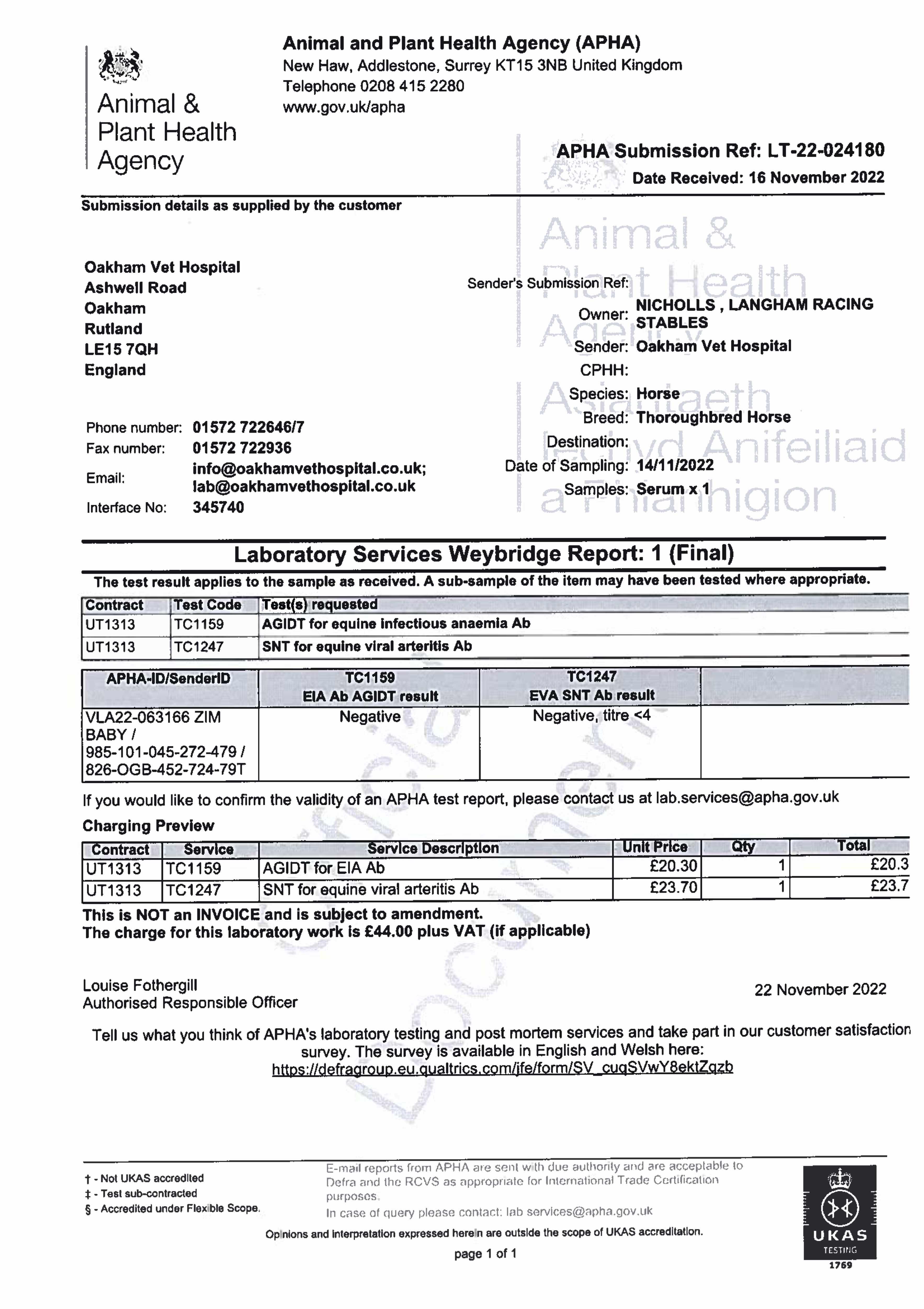 Consignor: Langham Racing Stables (M. Appleby)