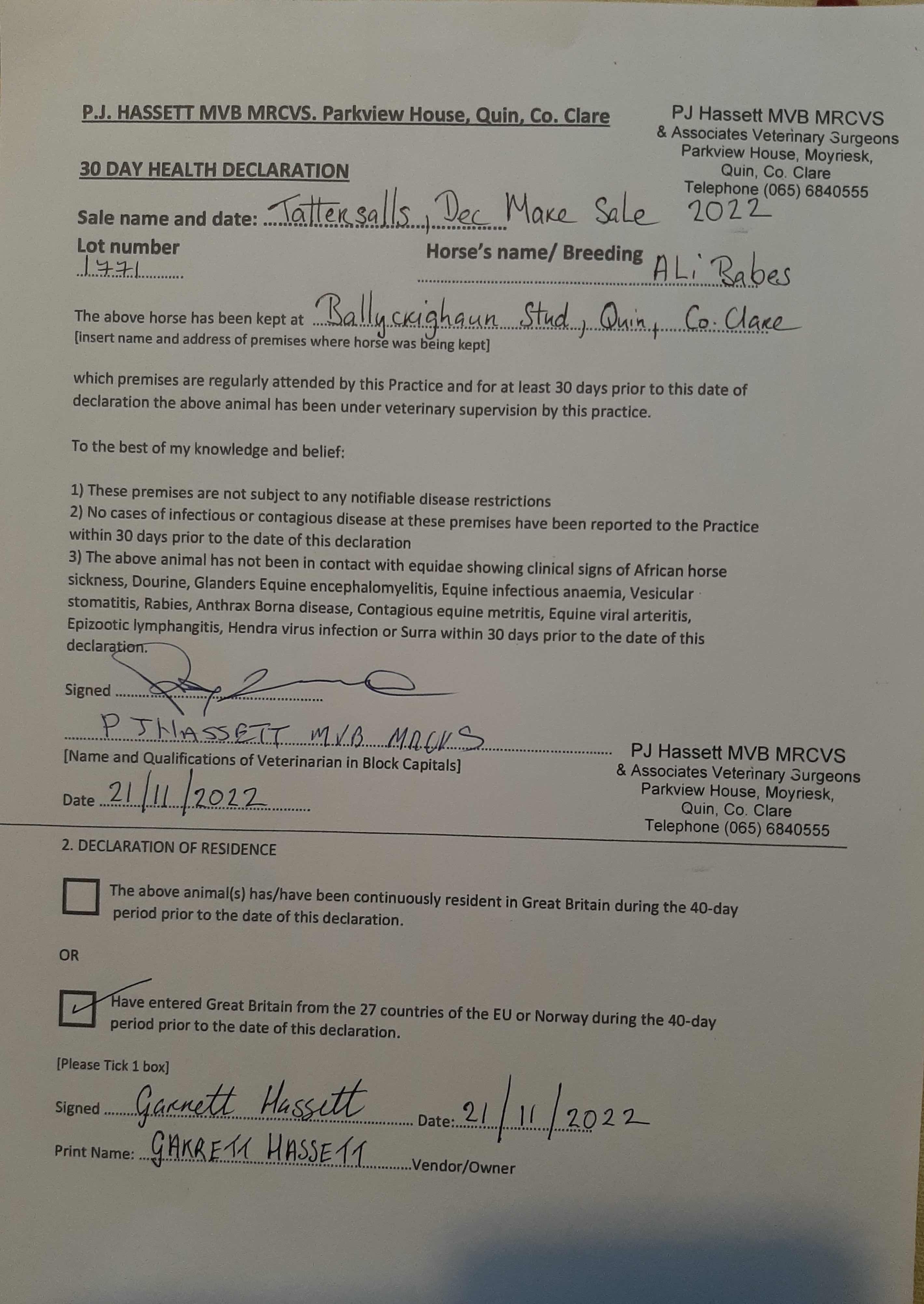 Consignor: Ballycrighaun Stud, Ireland