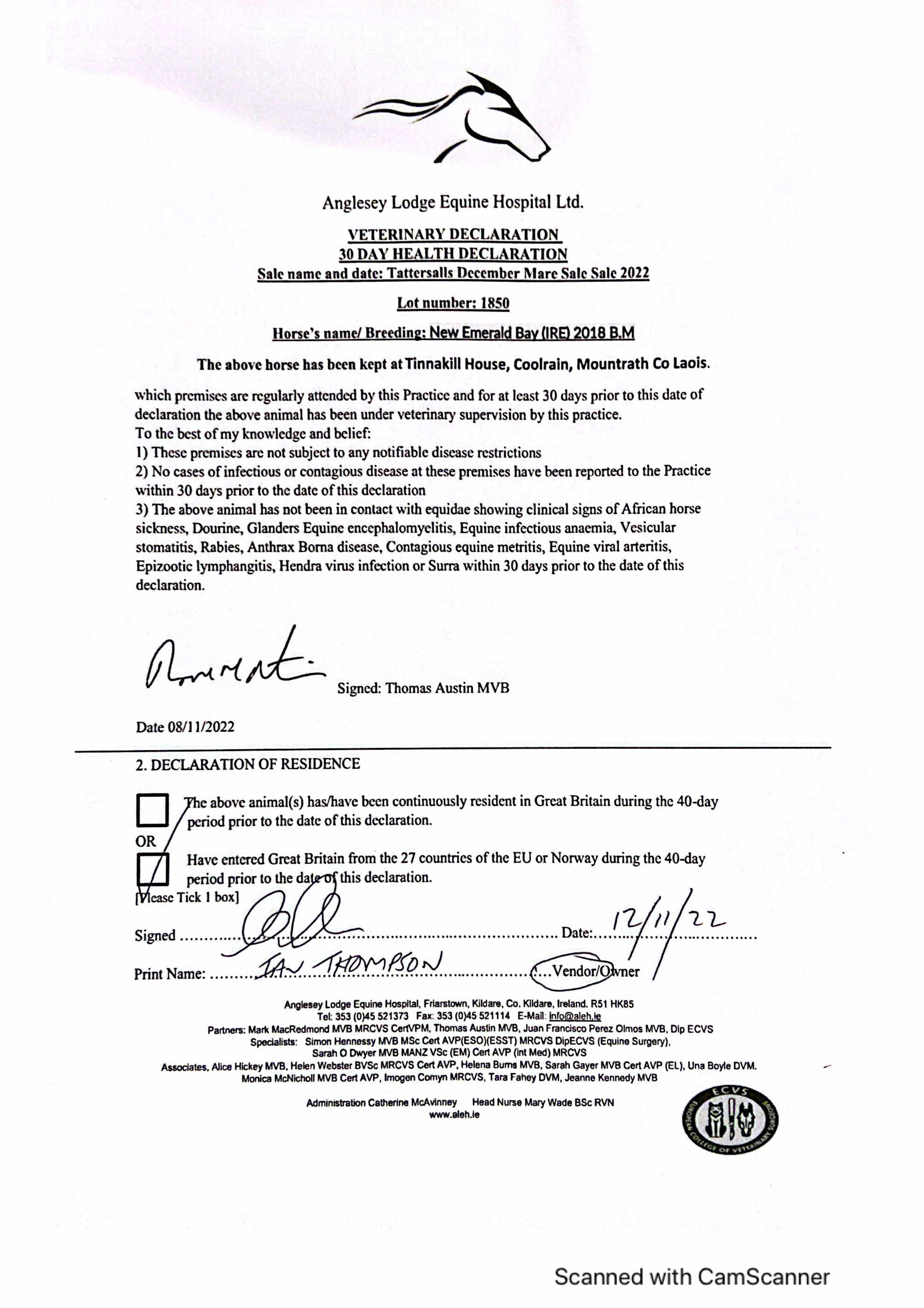 Consignor: Tinnakill House, Ireland