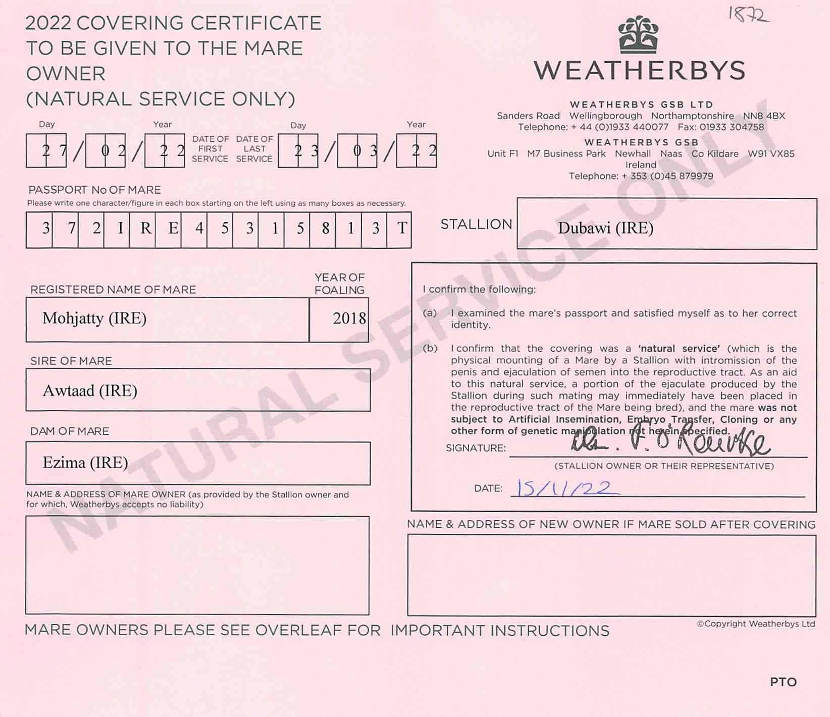 Consignor: Overbury Stud
