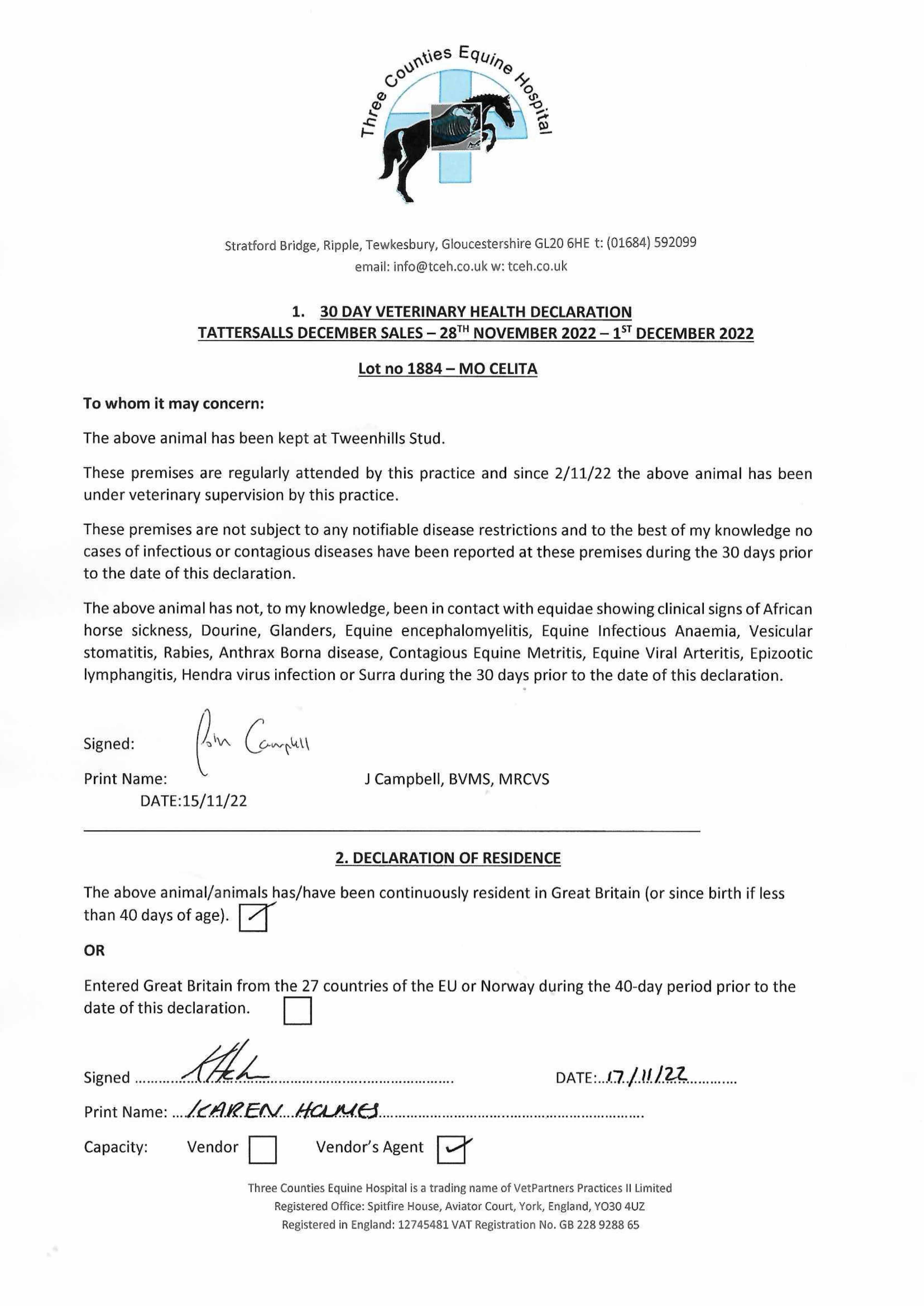 Consignor: Tweenhills Farm & Stud