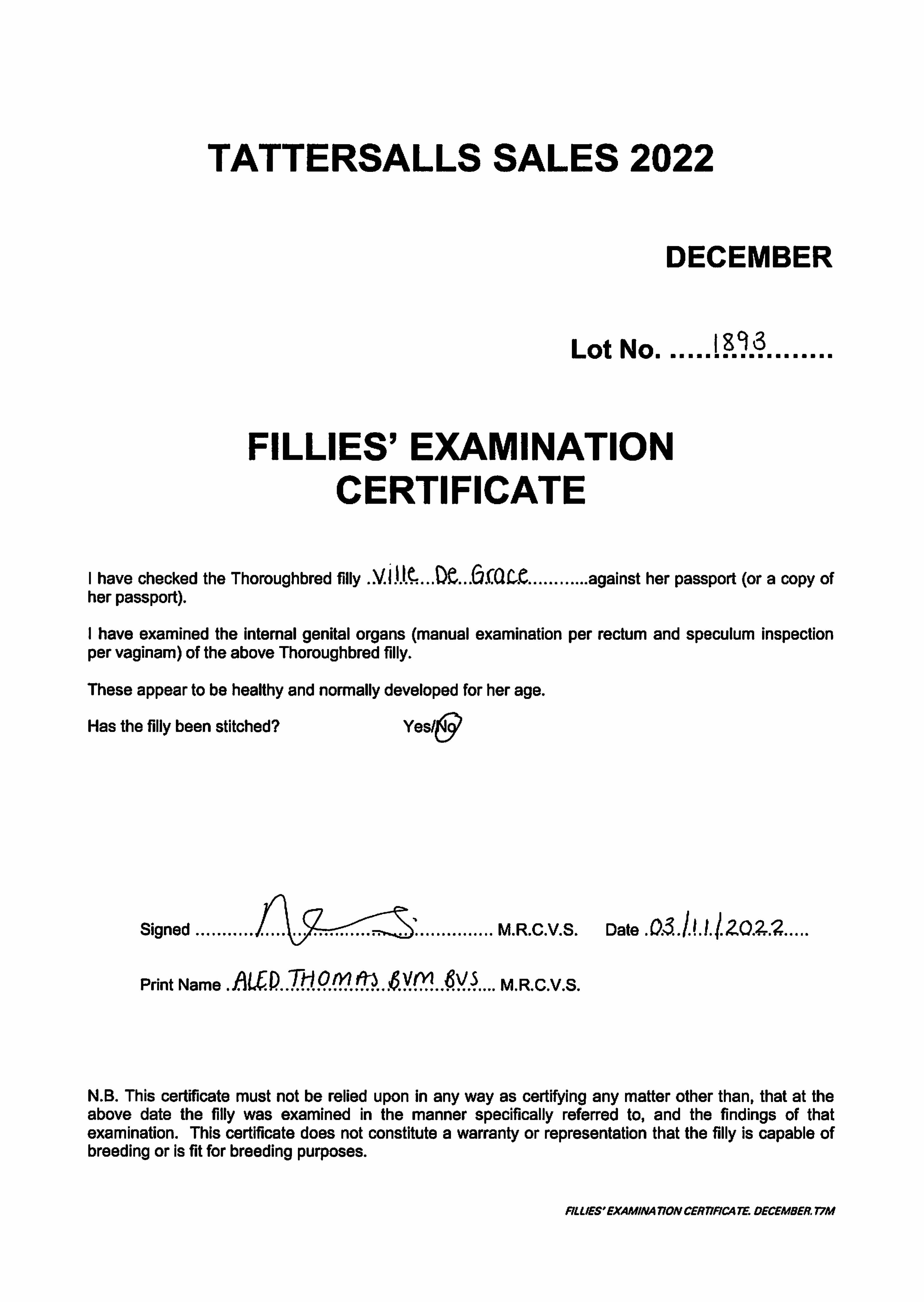 December Foal Sale 2024 lot 925 F. by Frankel (GB) 2024, Norris Bloodstock=>Amanda Skiffington Agt for Hampstead Holdings 700,000 gns