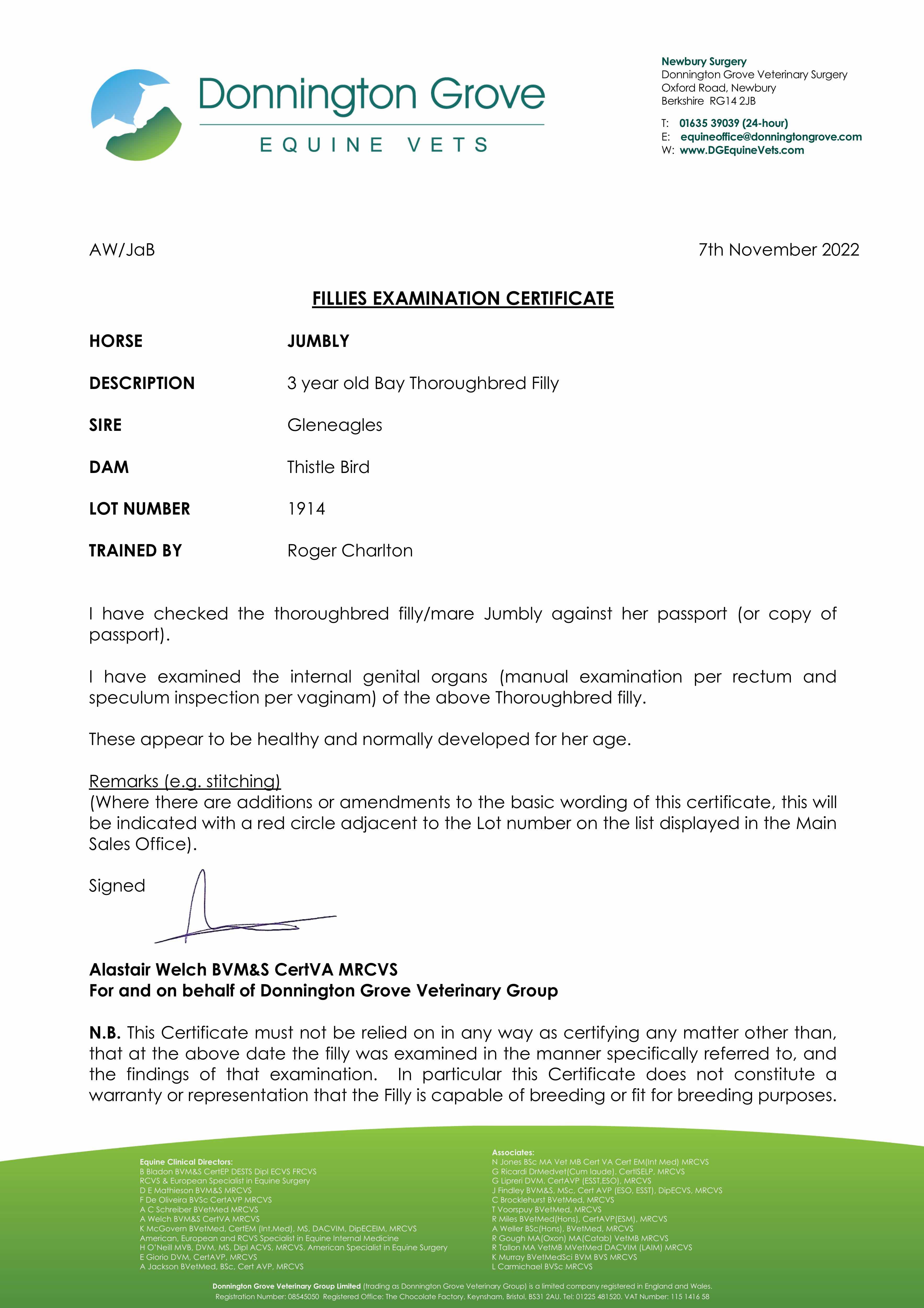July Sale 2022 lot 725 Thorn (GB) (G. by Dansili (GB)), Grove Farm Stables (J. Gallagher)=>Paolo Favero 2,500 gns