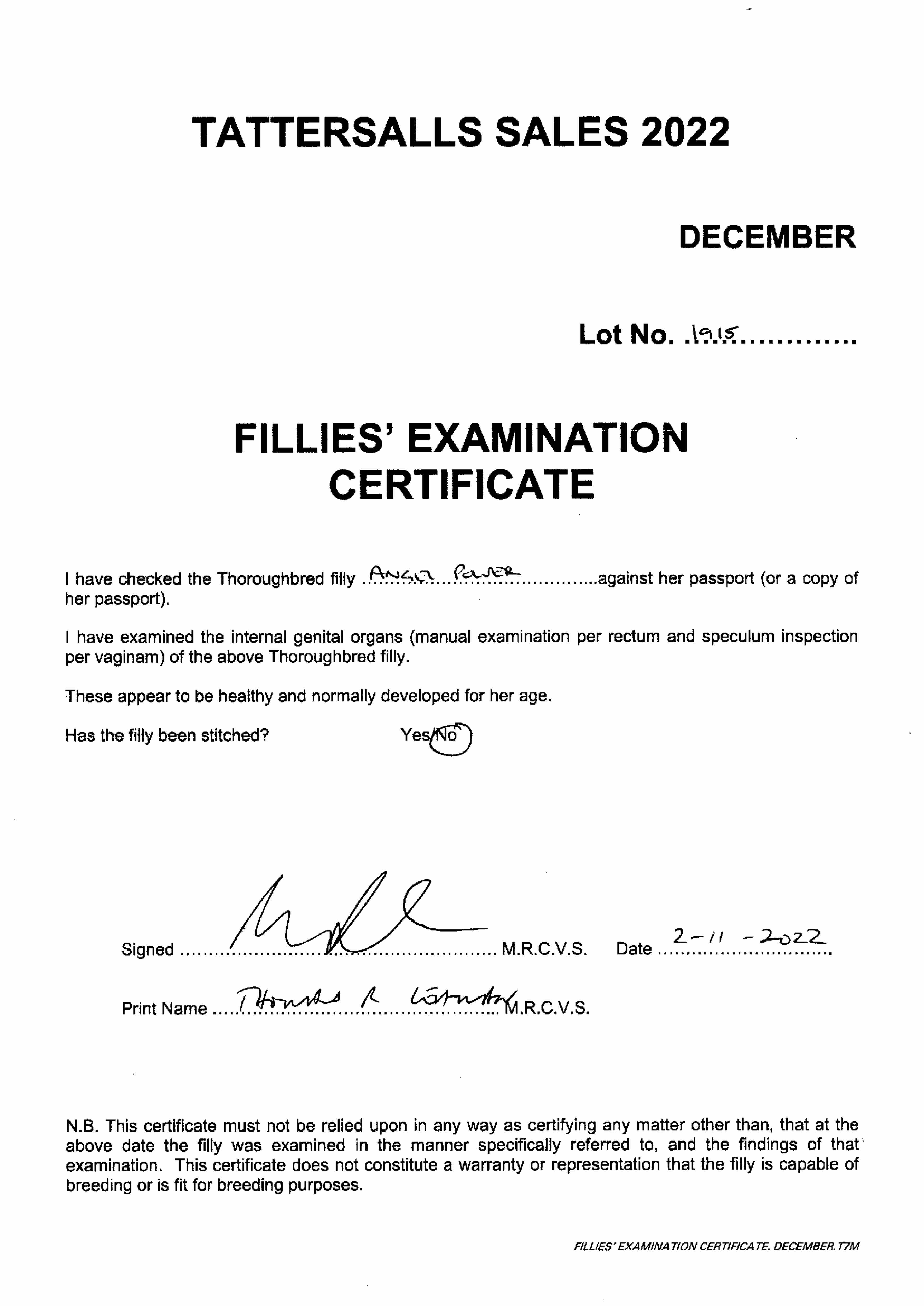 December Foal Sale 2025 lot 877 F. by Pinatubo (IRE) 2025, Selwood Bloodstock=>JCR Bloodstock 160,000 gns