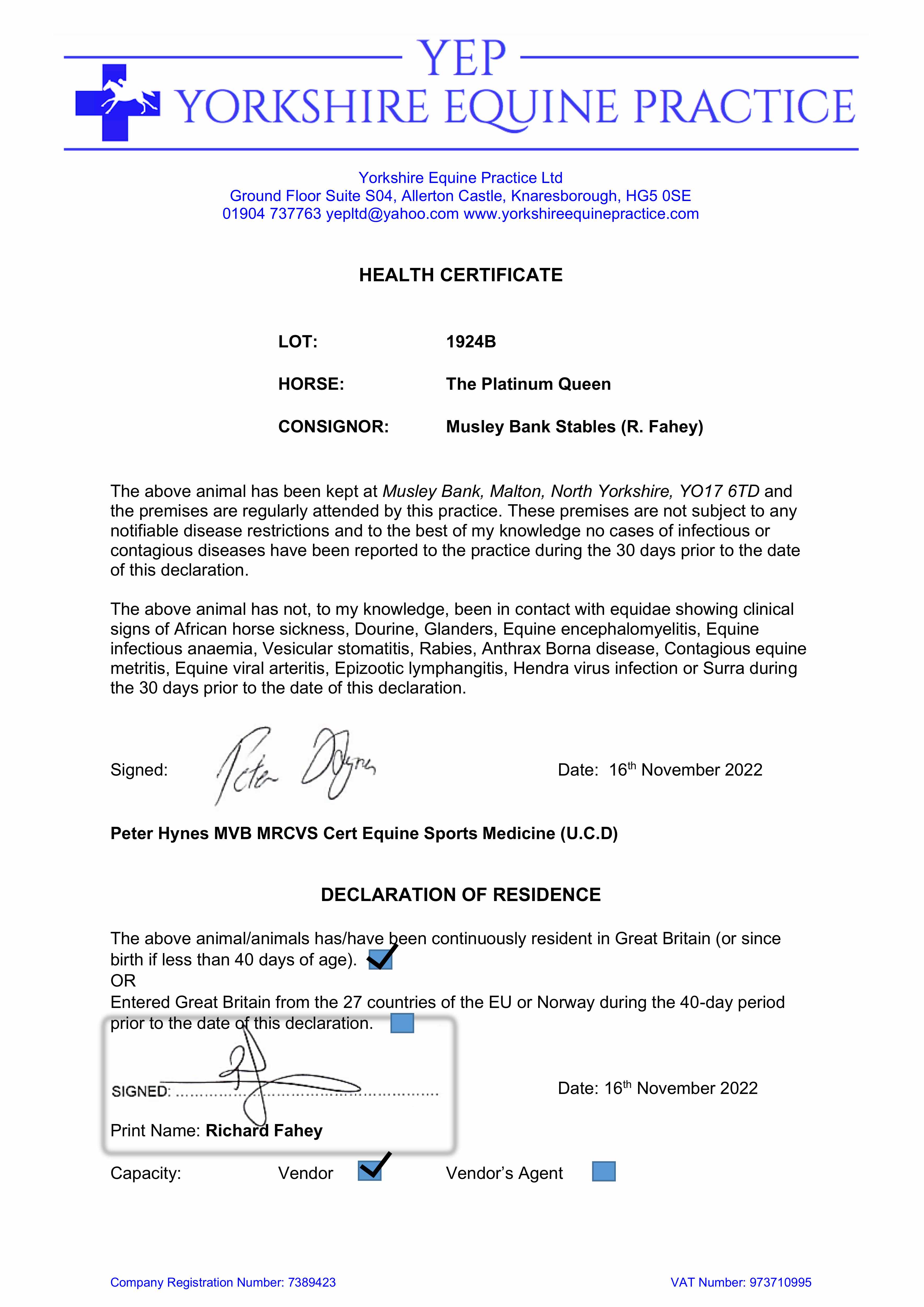Consignor: Musley Bank Stables (R. Fahey)