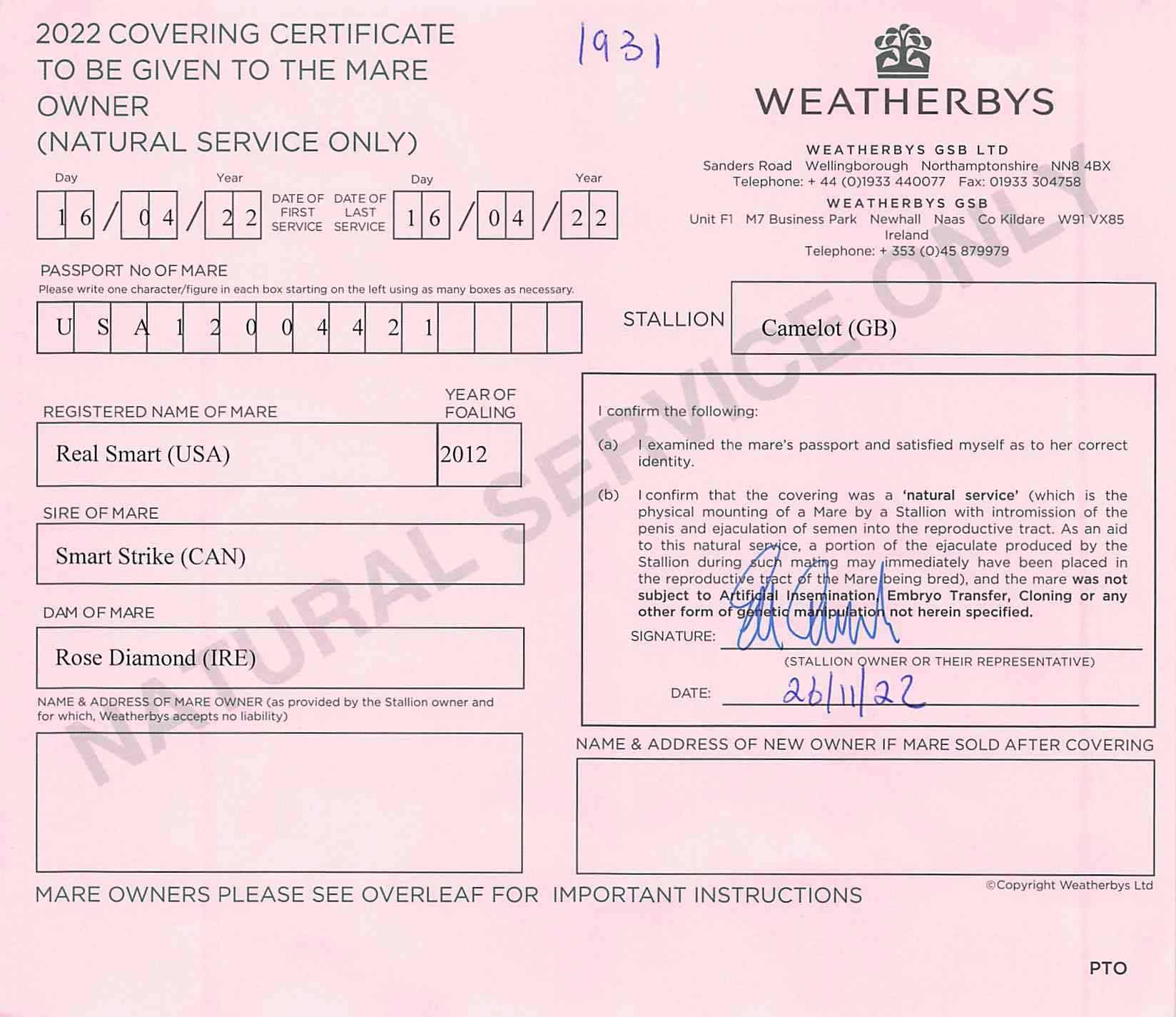 Consignor: Watership Down Stud